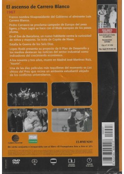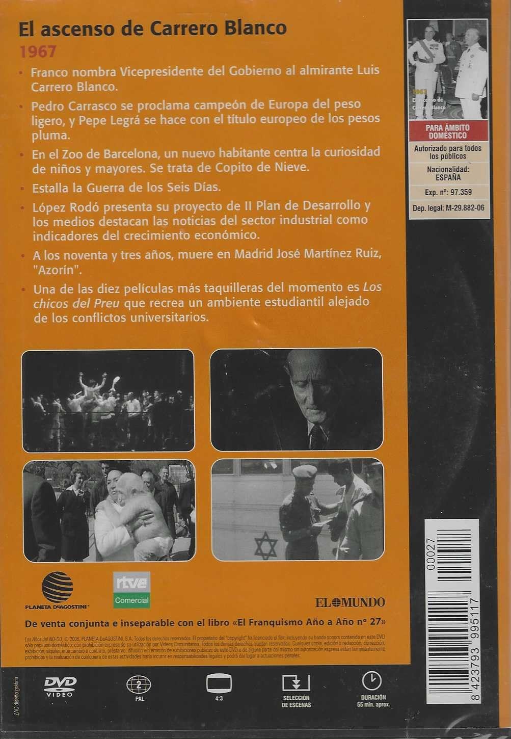 https://back.dvdstorespain.es/en/best-documentaries-on-blu-ray-and-dvd/129174-los-anos-del-no-do-1967-el-ascenso-de-carrero-blanco-dvd-edicion-slim-dvd-2024--0634065166847.html129174Los Años del No-Do: 1967, el Ascenso de Carrero Blanco (Edición Slim) [DVD] (2012)El año 1939 nacieron los Noticieros que, por Orden de la Vicesecretaría de Educación Popular, se debían proyectar en todos los cines del territorio nacional. Esta obligación se mantuvo hasta el 22 de agosto de 1975, aunque el NO-DO siguió produciéndose hasta 1977. Su lema era “El mundo entero al alcance de todos los españoles”. En esta serie documental se resume cada año en un capítulo de algo menos de una hora. https://dvdstorespain.es/1126958-home_default/los-anos-del-no-do-1967-el-ascenso-de-carrero-blanco-dvd-edicion-slim-dvd-2024-.jpg5.2893instock5.28935.2893002026-02-08T06:45:12+0100/Start/Start/DVD/Start/New/Start/Best Documentaries on Blu-Ray and DVD