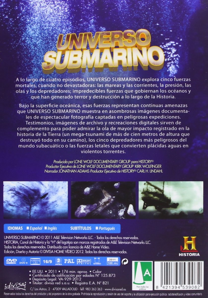 https://back.dvdstorespain.es/en/best-documentaries-on-blu-ray-and-dvd/23124-underwater-universe-dvd--8421394539082.html23124Underwater Universe [DVD]<div><br /><p><span>Over four episodes, Underwater Universe explores five deadly, if not devastating, forces: tides and currents, pressure, waves and predators; unpredictable forces that govern the oceans and that have generated terror and destruction throughout History.</span></p></div>https://dvdstorespain.es/528526-home_default/underwater-universe-dvd-.jpg5.3719instockDivisa Home Video5.37195.3719002016-01-13T23:28:11+0100/Start/Start/DVD/Start/New/Start/Best Documentaries on Blu-Ray and DVD