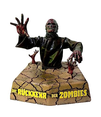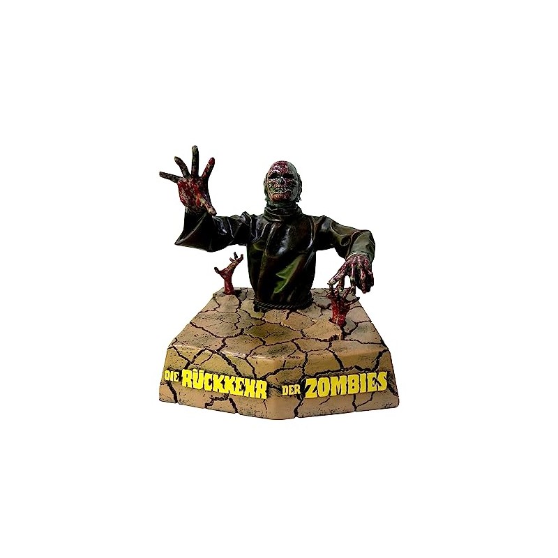 Conocida como “Zombie III”, “Die Rucker Der Zombies” es una obra de culto para los fans del horror y el fantástico. La película italiana del año ochenta llega a tu colección cinéfila para ser uno de tus nuevos displays de referencia. Este zombie de edición limitada es un display de unos 24 cms de altura dentro del cuál podrás guardar tu estuche de la película. El suelo agrietado con el título de la película se abre y de el sale el detallado zombie pintado como si fuera uno de los no-muertos que aparecen en la película. Se trata de una edición limitada y exclusiva de tan sólo 150 piezas en todo el mundo. Hazle hueco a esta pieza y convierte tu casa en un lugar en el que cualquier cosa puede pasar de noche… No incluye la película.