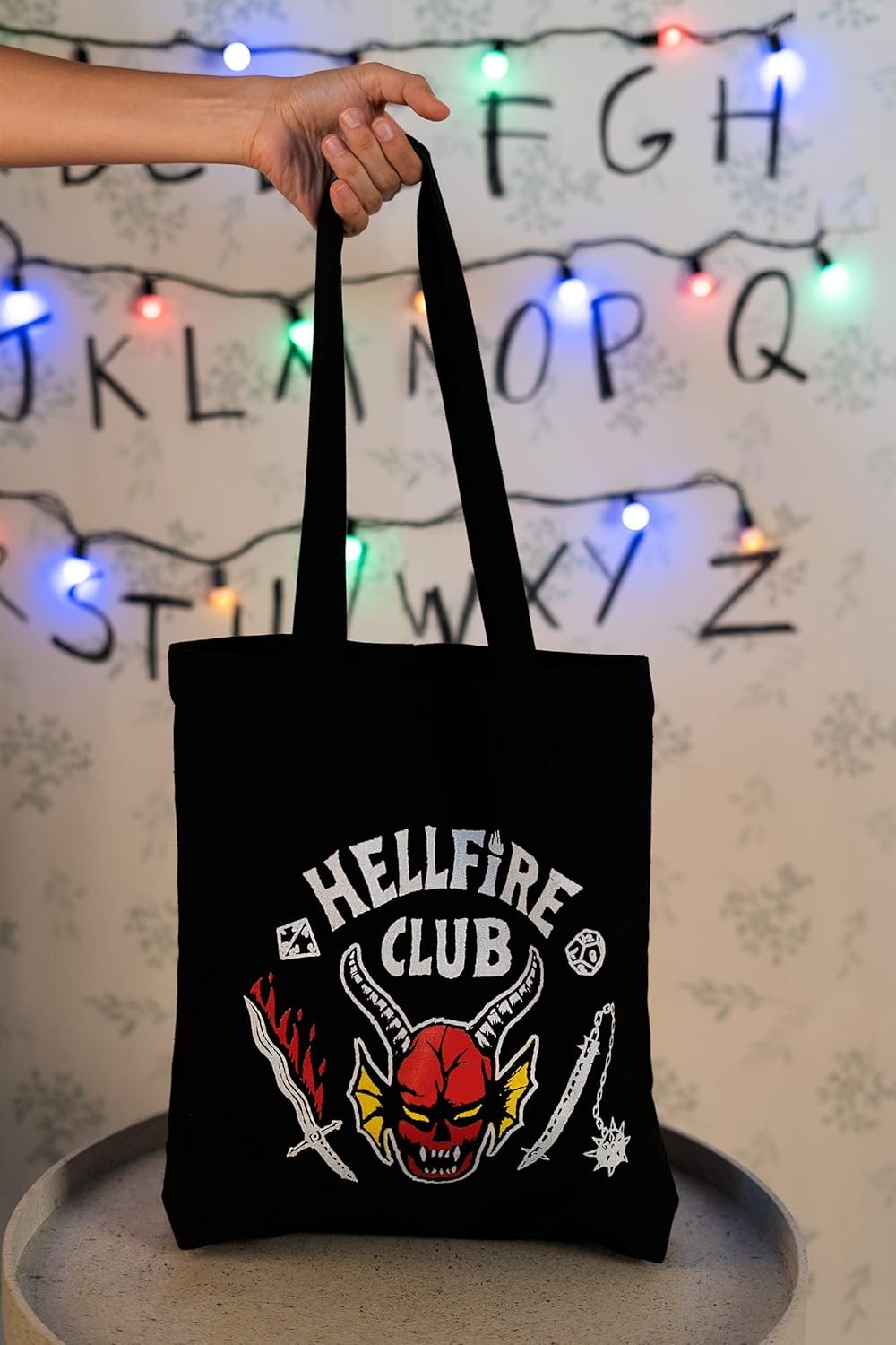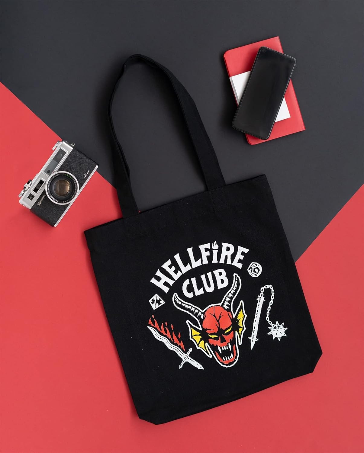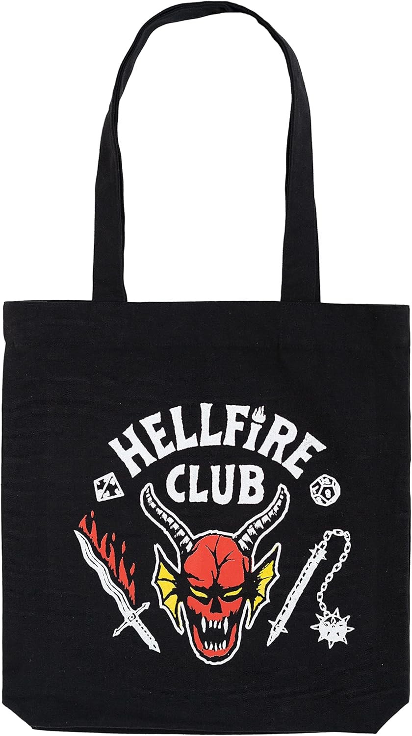 Esta tote bag oficial de Stranger Things – Hellfire Club no es solo una bolsa de algodón: es tu nuevo uniforme de aventurero urbano. Hecha para fans que llevan dados de 20 siempre a mano… ¡y ahora también las llaves, la libreta, el merch y hasta un waffler de emergencia! Con su diseño inspirado en el misterioso Hellfire Club y ese toque vintage ochentero que todos adoramos, esta bolsa no solo te acompaña a la compra, al cole o a la playa… también te acompaña en tu próxima misión contra el Upside Down. Bolsa Tote de tela en medidas de 37x39x10 cm con dos asas para llevarla al hombro. Fabricado 100% de algodón.