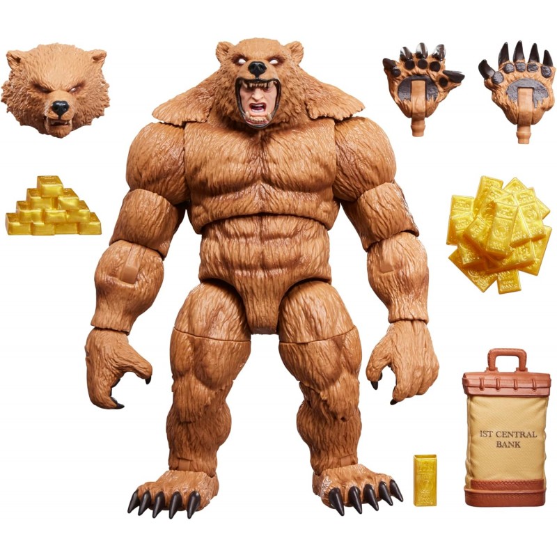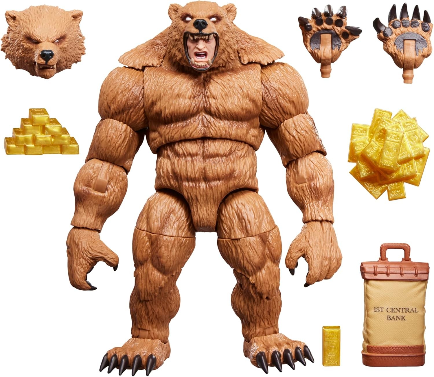 Lleva la fuerza bruta a tu colección con la Figura Marvel’s Grizzly Marvel Legends articulada de 20 cm, una pieza imponente que hará rugir cualquier estantería. Inspirada en el poderoso villano del universo Marvel, esta figura captura toda la ferocidad y presencia del personaje, combinando tamaño, detalle y carácter. Con un cuerpo voluminoso y múltiples puntos de articulación, esta figura permite recrear poses dinámicas y escenas de acción cargadas de fuerza. Su diseño detallado resalta la textura del traje y la actitud amenazante de Grizzly, convirtiéndolo en un imprescindible para fans de los villanos más contundentes de Marvel. Incluye una cabeza adicional para alternar expresiones, una bolsa de dinero para recrear sus golpes más clásicos, garras intercambiables para diferentes poses de combate y tres accesorios de lingotes de oro que aportan un extra de narrativa y exposición. Con sus 20 cm de altura, es ideal para destacar dentro de cualquier colección Marvel Legends, ya sea en solitario o acompañado de otros personajes del universo Marvel. Una figura perfecta para coleccionistas que buscan potencia, personalidad y un villano con auténtico peso en su vitrina.