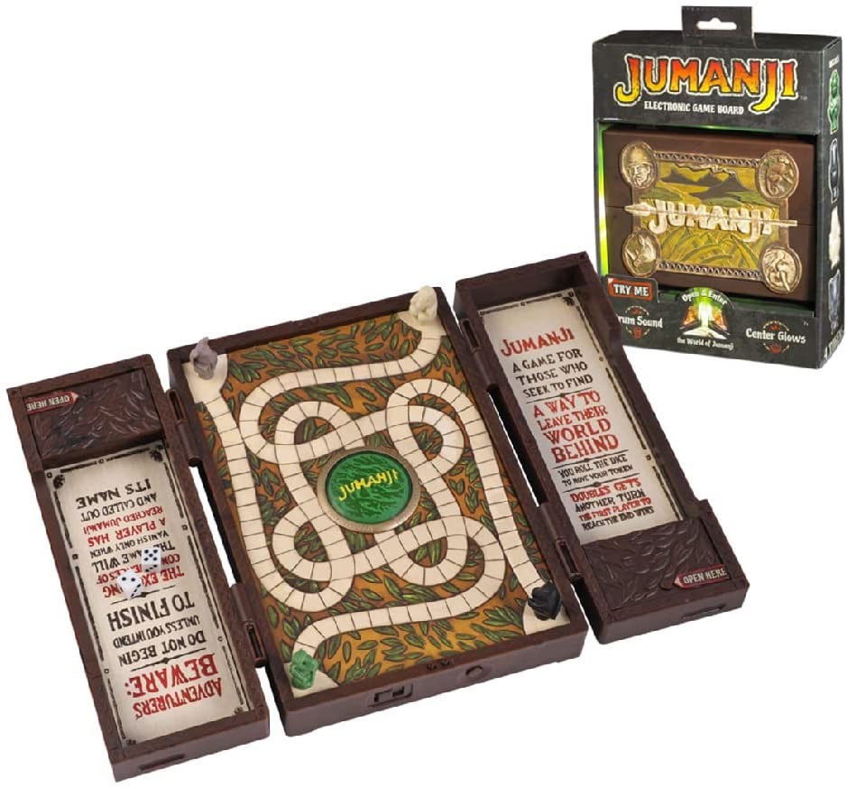 Una pieza única y cotizada para los fans que crecieron viendo la película "Jumanji", dirigida por Joe Johnston y protagonizada por Robin Williams. Esta réplica del tablero de la película incluye piezas y dados, además de tener luz y sonido que imitan los efectos del juego de la película. No obstante, se trata de una réplica, no de un juego de mesa. Revive tu nostalgia y la magia indeleble de esta película de los años noventa con este exquisito tablero. Funciona con pilas (incluidas).