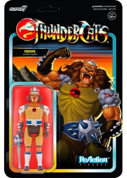 Grune el Destructor es un tigre dientes de sable con forma antropomorfa. El poderoso felino formaba parte de los Thundercats hasta que el hambre de poder y la avaricia le volvieron en uno de sus peores enemigos. La marca Reaction Figures de Super7 está creando una serie de figurones articulados exclusivos de los Thundercats que vienen en un blíster negro coleccionable. Este poderoso guerrero está hecho de PVC y viene con una maza con pinchos, arma con la que es un rival temible para sus antiguos compañeros, los felinos protagonistas de la serie de CBS. Mide 10 cms, de modo que está a la misma escala que el resto de figuras de los héroes y villanos de esta saga fantástica. Hazte con todos y lleva la emoción y la acción de los Thundercats desde la pequeña pantalla hasta tu casa.