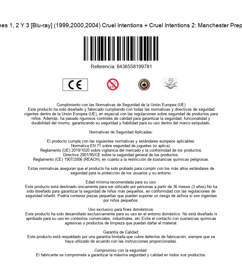 https://back.dvdstorespain.es/en/films/119827-crueles-intenciones-1-2-y-3-blu-ray-199920002004-cruel-intentions-cruel-intentions-2-manchester-prep-cruel-intention-8436558199781.html119827Crueles Intenciones 1, 2 Y 3 [Blu-ray] (1999,2000,2004) Cruel Intentions + Cruel Intentions 2: Manchester Prep + Cruel IntentionKathryn (Sarah Michelle Gellar) y su hermanastro Sebastian (Ryan Phillippe), todavía estudiantes de bachillerato en un elitista instituto de Nueva York, deciden hacer una maquiavélica apuesta. Se trata de que Sebastian, un consumado Don Juan, se acueste con Annette (Reese Witherspoon), una joven que quiere permanecer virgen hasta su matrimonio. Si Sebastian pierde, Kathryn se quedará con su Jaguar, pero si gana... la tendrá a ella. - Dispuesto a comenzar una nueva vida, Sebastian Valmont (Robin Dunne), un brillante joven cuyo gusto por la anarquía amenaza con arruinar su futuro, acepta la oferta de su padre de mudarse junto a él y su nueva esposa a un lujoso piso de Nueva York, y asistir a la prestigiosa secundaria Manchester. Pero todo su oscuro pasado no puede prepararlo para los maquiavélicos planes de su malvada hermanastra, Kathryn (Amy Adams), quien no se detendrá hasta conseguir lo que quiere: destruirlo. Buscando un refugio al hostil hogar, Sebastian, que ha decidido dejar el pasado atrás y ser un hombre de una sola mujer, acaba por enamorarse de Danielle (Sarah Thompson), la dulce hija del director de la escuela y cuya inocencia le vuelve loco. Sin embargo, una vez más, la verdad sale a flote: en los juegos sexuales, la única regla es no enamorarse. - Jason y Patrick, los dos alumnos más inmorales del Prestridge College, se apuestan seducir y abandonar a dos confiadas compañeras, pero su perverso juego termina en empate. Cassie Merteuil, una mujer fría y calculadora, se convertirá entonces en el trofeo definitivo que les lleve a desempatar. Sin embargo, saben que ahora todo será más complicado para ellos, porque Cassie no es otra de las inocentes alumnas del College, sino una mujer cruel, con fama de manipular a los hombres y de doblegar su voluntad hasta llevarles a límites que ni los dos depravados alumnos podrían imaginar... . Idiomas: Castellano (Dolby Digital 2.0),Inglés (DTS-HD Master 5.1),Alemán (Dolby Digital 2.0),Italiano (Dolby Digital 2.0),Francés (Dolby Digital 2.0),Español latino (Dolby Digital 2.0). Subtítulos: Castellano,Inglés,Francés,Alemán,Italiano,Portugués.https://dvdstorespain.es/673110-home_default/crueles-intenciones-1-2-y-3-blu-ray-199920002004-cruel-intentions-cruel-intentions-2-manchester-prep-cruel-intention.jpg19.8347instockResearch23.140519.834714.2857760203973.30582024-12-07T07:45:19+0100/Start/Start/Blu-Ray/Start/Films/Start/Outlet DVD , Blu-Ray and CD/Start/New