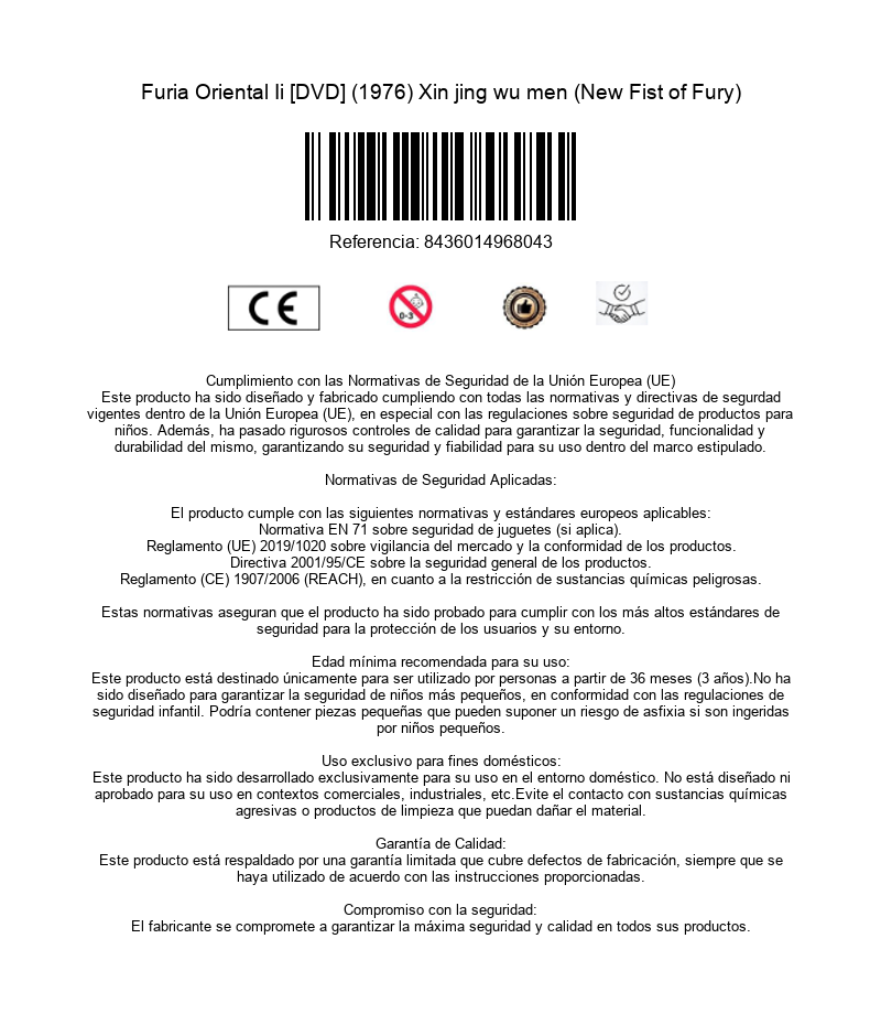 https://back.dvdstorespain.es/en/films/123527-furia-oriental-ii-dvd-como-nuevo-dvd--8436014968043.html123527Furia Oriental Ii [DVD] (1976) Xin jing wu men (New Fist of Fury)Un hermano y una hermana escapan de la Shanghai ocupada por los japoneses a Taiwan (tambien invadida), para quedarse con su abuelo, quien dirige una escuela de Kung-Fu. Sin embargo, el maestro de una escuela japonesa de Kung-Fu en Taiwan tiene pensado tener todas las demás escuelas de la isla bajo su dominio, y parte de su plan consiste en el asesinato del abuelo de los hermanos. https://dvdstorespain.es/762072-home_default/furia-oriental-ii-dvd-como-nuevo-dvd-.jpg4.6281instock4.62814.6281002025-06-03T20:15:04+0200/Start/Start/DVD/Start/Films/Start/New
