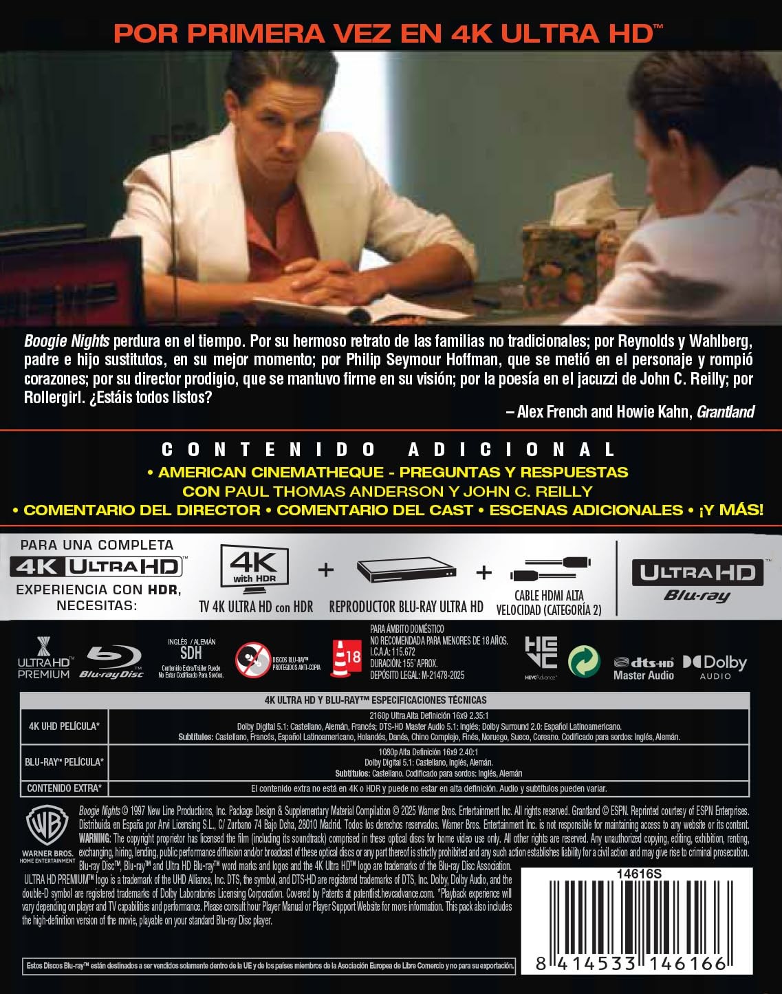 https://back.dvdstorespain.es/en/films/128047-boogie-nights-4k-uhd-bd-edicion-metalica-blu-ray-2025--8414533146166.html128047Boogie Nights (Ed. Metálica) [4K UHD, Blu-ray] (1997)A finales de los 70, Jack Horner, un director de cine porno que considera su trabajo una forma de arte descubre a Eddie Adams, un joven ingenuo que desea triunfar y que tiene unas características físicas muy adecuadas para ese tipo de cine. Eddie cambia su nombre por el de Dirk Diggler, se adapta inmediatamente a nuevo estilo de vida y pronto se convierte en una gran estrella del porno.https://dvdstorespain.es/1104056-home_default/boogie-nights-4k-uhd-bd-edicion-metalica-blu-ray-2025-.jpg30.4959instockARVI30.495930.4959002025-11-25T06:30:07+0100/Start/Start/Blu-Ray/Start/Films/Start/New/Start/4K-UHD