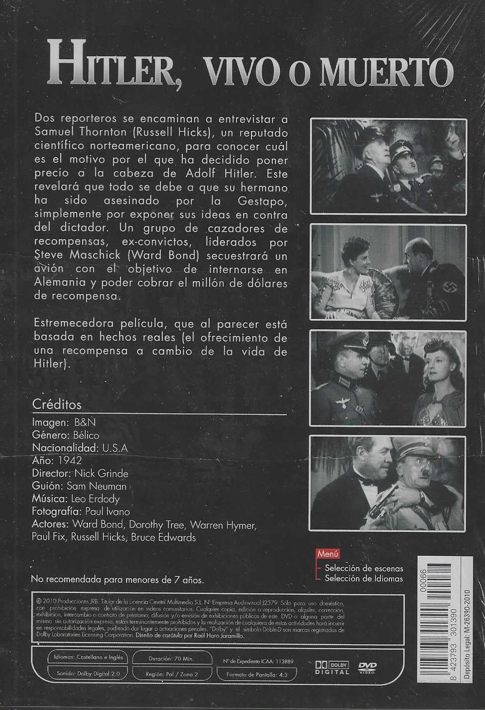 https://back.dvdstorespain.es/en/films/128870-hitler-vivo-o-muerto-dvd-edicion-slim-dvd-2024--0634065166151.html128870Hitler, Vivo o Muerto (Edición Slim) [DVD] (1942) Hitler – Dead or AliveUn grupo de matones es contratado por un millonario para que, nada menos, vayan a Alemania y maten a Hitler. https://dvdstorespain.es/1120958-home_default/hitler-vivo-o-muerto-dvd-edicion-slim-dvd-2024-.jpg5.2893instock5.28935.2893002026-01-22T04:45:26+0100/Start/Start/DVD/Start/Films/Start/New
