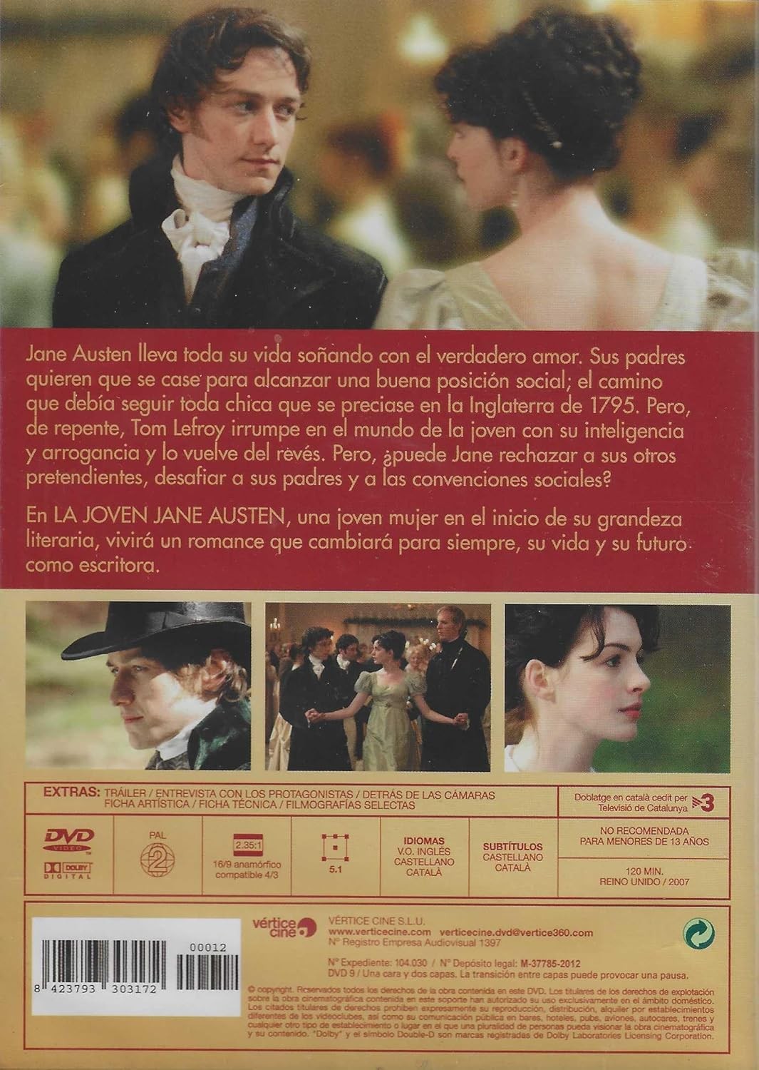 https://back.dvdstorespain.es/en/films/129170-la-joven-jane-austen-dvd-edicion-slim-dvd-2024--0634065166816.html129170La Joven Jane Austen (Edición Slim) [DVD] (2007) Becoming JaneBiográfico retrato de la juventud de Jane Austen (Anne Hathaway). En torno a 1795, antes de convertirse en una famosa escritora, la protagonista vivió una serie de experiencias que influyeron de manera deteminante en su obra literaria. La más importante de ellas fue su apasionada relación amorosa con Tom Lefroy (James McAvoy), un arrogante joven irlandés. https://dvdstorespain.es/1126844-home_default/la-joven-jane-austen-dvd-edicion-slim-dvd-2024-.jpg5.2893instock5.28935.2893002026-02-07T20:45:24+0100/Start/Start/DVD/Start/Films/Start/New