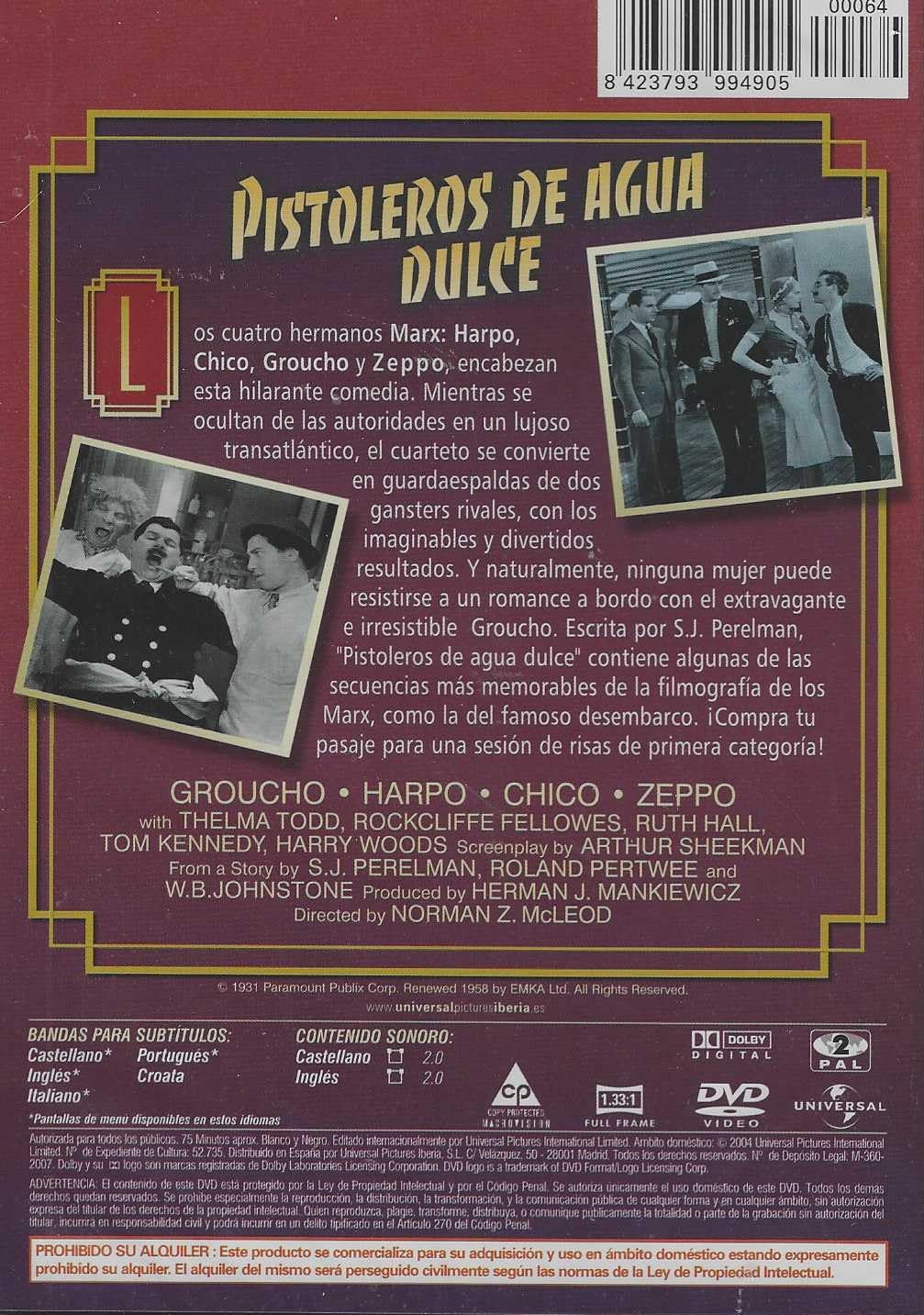 https://back.dvdstorespain.es/en/films/129480-pistoleros-de-agua-dulce-dvd-coleccion-hermanos-marx-edicion-slim-dvd-2024--605848059724.html129480Pistoleros de Agua Dulce (Edición Slim) [DVD] (1931) Monkey BusinessMientras se ocultan de las autoridades en un lujoso trasantlántico, los hermanos Marx se convierten en guardaespaldas de dos gángsteres rivales y, como siempre, provocan situaciones caóticas y delirantes. https://dvdstorespain.es/1133510-home_default/pistoleros-de-agua-dulce-dvd-coleccion-hermanos-marx-edicion-slim-dvd-2024-.jpg6.6116instock6.61166.6116002026-02-24T02:47:15+0100/Start/Start/DVD/Start/Films/Start/New