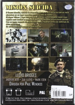 https://back.dvdstorespain.es/en/films/129865-mision-suicida-dvd--8436037882500.html129865Misión Suicida [DVD] (1968) Attack on the Iron CoastEl Mayor Jamie Wilson dirige un comando encargado de una de las misiones más complicadas de la Segunda Guerra Mundial. Deben atacar una instalación naval alemana conocida como la Costa de Hierro y que se considerada inexpugnable. El entrenamiento es largo y duro, muchos de los hombres mueren en los días previos, sin embargo Wilson cree que es el precio que deben pagar para conseguir el objetivo. https://dvdstorespain.es/1139597-home_default/mision-suicida-dvd-.jpg4.6281instock4.62814.6281002026-02-27T04:45:15+0100/Start/Start/DVD/Start/Films/Start/New