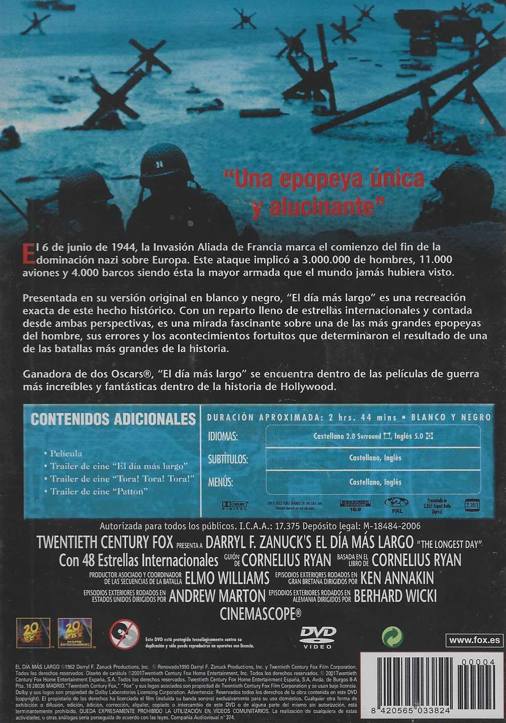 https://back.dvdstorespain.es/en/films/129873-el-dia-mas-largo-dvd-edicion-slim-dvd-2024--605848918953.html129873El Día Más Largo (Edición Slim) [DVD] (1962) The Longest DaySegunda Guerra Mundial (1939-1945). Minucioso relato del desembarco de las tropas aliadas en las playas de Normandía el 6 de junio de 1944, día que señaló el comienzo del fin de la dominación nazi sobre Europa. En este ataque participaron 3.000.000 de hombres, 11.000 aviones y 4.000 barcos. https://dvdstorespain.es/1139700-home_default/el-dia-mas-largo-dvd-edicion-slim-dvd-2024-.jpg6.6116instock6.61166.6116002026-02-27T11:15:35+0100/Start/Start/DVD/Start/Films/Start/New