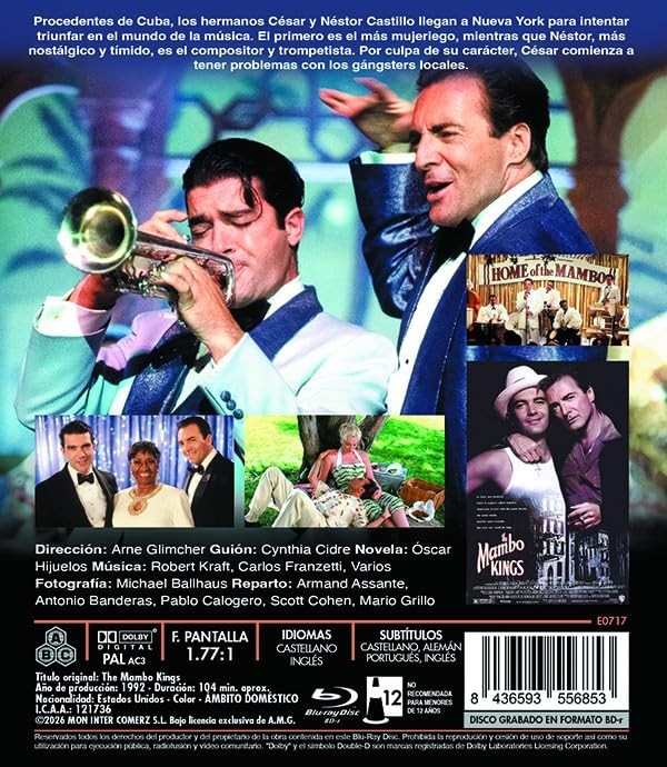 https://back.dvdstorespain.es/en/films/129962-los-reyes-del-mambo-tocan-canciones-de-amor-bdr-the-mambo-kings-blu-ray-2026--8436593556853.html129962Los Reyes del Mambo Tocan Canciones de Amor [Blu-ray R] (1992) The Mambo KingsProcedentes de Cuba, los hermanos César y Néstor Castillo llegan a Nueva York para intentar triunfar en el mundo de la música. El primero es el más mujeriego, mientras que Néstor, más nostálgico y tímido, es el compositor y trompetista. Por culpa de su carácter, César comienza a tener problemas con los gángsters locales.https://dvdstorespain.es/1141138-home_default/los-reyes-del-mambo-tocan-canciones-de-amor-bdr-the-mambo-kings-blu-ray-2026-.jpg10.3306instock10.330610.3306002026-03-01T07:30:03+0100/Start/Start/Blu-Ray/Start/Films/Start/New/Start/NOT EBY DVDR-BDR