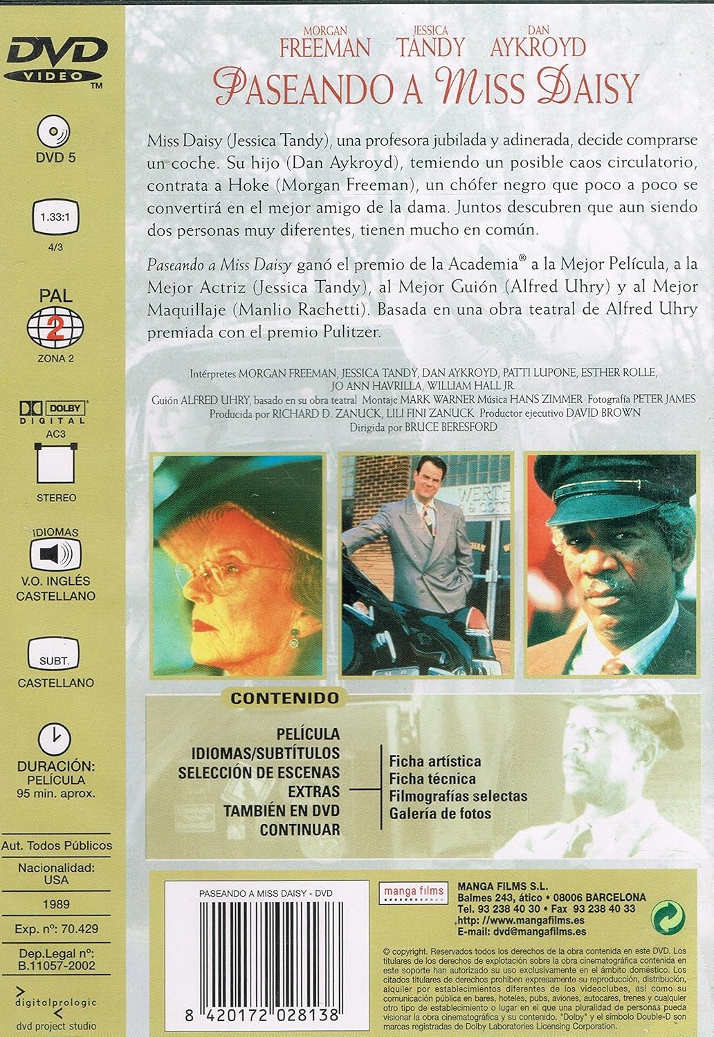 https://back.dvdstorespain.es/en/films/130100-paseando-a-miss-daisy-dvd-8420172028138.html130100Paseando a Miss Daisy [DVD] (1989) Driving Miss DaisyEn la sureña Atlanta, Georgia, Miss Daisy (Jessica Tandy) es una antipática y autoritaria profesora jubilada de 72 años. Tras sufrir un accidente conduciendo su coche, su hijo (Dan Aykroyd), temiendo por la vida de su madre, contrata a un chófer negro (Morgan Freeman) para que la lleve de paseo. Al principio, la desconfianza de la anciana respecto al tranquilo conductor es absoluta. https://dvdstorespain.es/1143658-home_default/paseando-a-miss-daisy-dvd.jpg4.6281instock4.62814.6281002026-03-04T23:15:03+0100/Start/Start/DVD/Start/Films/Start/New