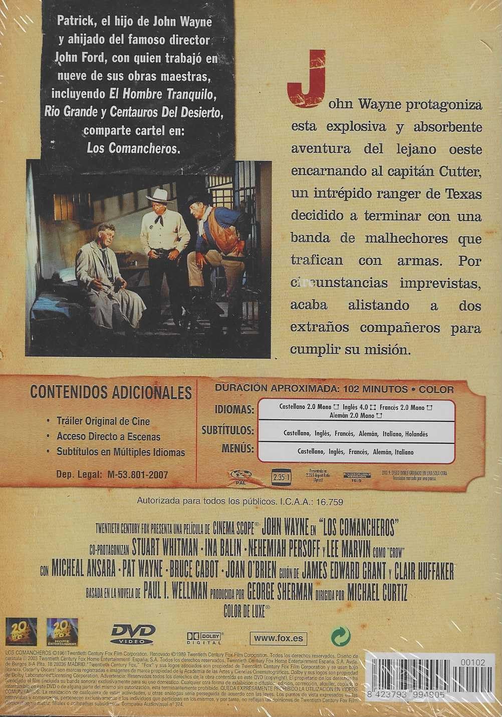 https://back.dvdstorespain.es/en/films/130153-los-comancheros-dvd-clasicos-del-oeste-edicion-slim-dvd-2024--0605848129250.html130153Los Comancheros (Edición Slim) [DVD] (1961) The ComancherosJake Cutter (John Wayne), un ránger de Texas, debe llevar a cabo una difícil y arriesgada misión: acabar con una peligrosa banda de forajidos que, cuando está a punto de estallar una guerra, se dedica a proporcionar armas y licores a los belicosos indios comanches. https://dvdstorespain.es/1144603-home_default/los-comancheros-dvd-clasicos-del-oeste-edicion-slim-dvd-2024-.jpg5.2893instock5.28935.2893002026-03-07T08:45:39+0100/Start/Start/DVD/Start/Films/Start/New