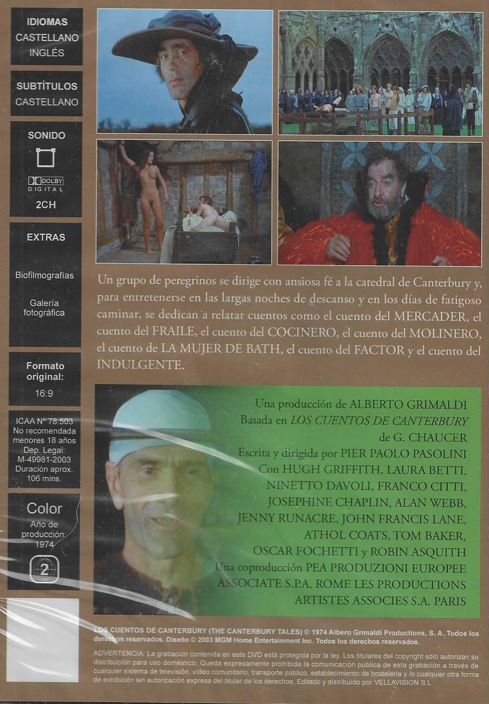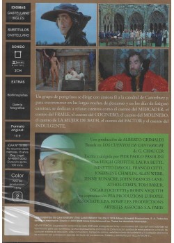 https://back.dvdstorespain.es/en/films/130182-los-cuentos-de-canterbury-dvd-1974-dvd-2024--0605848557121.html130182Los Cuentos de Canterbury [DVD] (1972) I racconti di CanterburyUn grupo de peregrinos que van a Canterbury se entretienen narrando cuentos: el joven Nicola conquista a la mujer de un rico leñador aprovechando su superstición; dos estudiantes se vengan de un molinero que roba harina a sus clientes; el inocente Perkin es expulsado de su pueblo y acaba arruinado; una insaciable viuda de Bath destruye con su fogosidad a sus maridos para heredar sus bienes; un rico y anciano solterón decide casarse con la jovencísima Maggio, que lo traiciona con un hermoso joven. Mientras tanto, un escribiente toma nota de los sucesos, analizando con humor e ironía las debilidades humanas.https://dvdstorespain.es/1145296-home_default/los-cuentos-de-canterbury-dvd-1974-dvd-2024-.jpg9.2562instock9.25629.2562002026-03-10T20:45:18+0100/Start/Start/DVD/Start/Films/Start/New