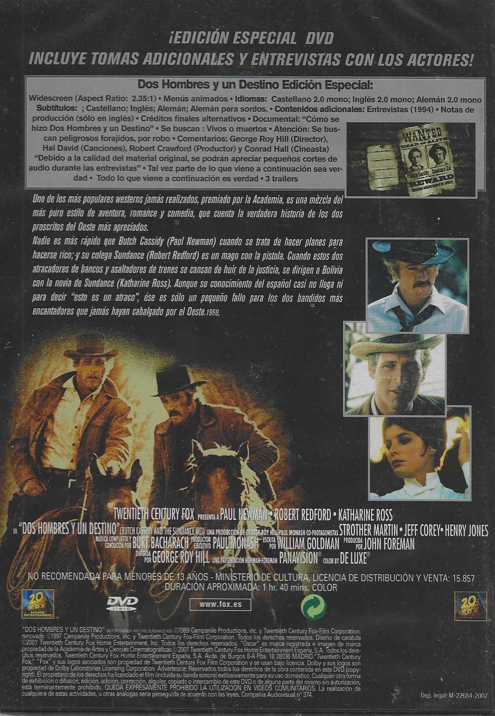 https://back.dvdstorespain.es/en/films/130216-dos-hombres-y-un-destino-edicion-especial-dvd-dvd-2024--0605848208542.html130216Dos Hombres y un Destino (Edición especial) [DVD] (1969) Butch Cassidy and the Sundance KidUn grupo de jóvenes pistoleros se dedica a asaltar los bancos del estado de Wyoming y el tren-correo de la Union Pacific. El jefe de la banda es el carismático Butch Cassidy (Newman), y Sundance Kid (Redford) es su inseparable compañero. Un día, después de un atraco, el grupo se disuelve. Será entonces cuando Butch, Sundance y una joven maestra de Denver (Ross) formen un trío de románticos forajidos que, huyendo de la ley, llegan hasta Bolivia. https://dvdstorespain.es/1145911-home_default/dos-hombres-y-un-destino-edicion-especial-dvd-dvd-2024-.jpg7.9339instock7.93397.9339002026-03-12T02:45:11+0100/Start/Start/DVD/Start/Films/Start/New
