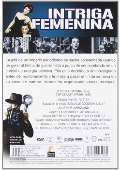 https://back.dvdstorespain.es/en/films/130230-intriga-femenina-dvd--8431804001665.html130230Intriga Femenina [DVD] (1957) Top Secret AffairLa propietaria de un imperio periodístico no puede tolerar la idea de que cierto general sea homenajeado como héroe de guerra en un comité de energía atómica. Con el fin de desprestigiarlo, lo invita a pasar el fin de semana en su casa de campo dispuesta a tenderle una serie de trampas. https://dvdstorespain.es/1146171-home_default/intriga-femenina-dvd-.jpg7.2727instock7.27277.2727002026-03-12T16:15:02+0100/Start/Start/DVD/Start/Films/Start/New