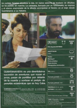 https://back.dvdstorespain.es/en/films/130379-guantanamera-dvd-dvd-2024--0605848305654.html130379Guantanamera [DVD] (1995)Comedia satírica sobre la vida en Cuba. Un atípico cortejo fúnebre y un camión siguen la misma ruta. El cortejo, compuesto por un funcionario, su esposa Gina y un anciano enamorado de la difunta, debe cumplir un nuevo y ahorrativo plan estatal de traslado de difuntos. En el camión van Mariano, un seductor empedernido, y Ramón, su más fiel aliado. Mariano y Gina se reconocen: él fue alumno de Gina en la Universidad y se enamoró de ella. Mientras el cortejo fúnebre y el camión avanzan, se producen un sinfín de divertidas peripecias que van uniendo poco a poco a Gina y a Mariano hasta que, por fin, toman una decisión. https://dvdstorespain.es/1148557-home_default/guantanamera-dvd-dvd-2024-.jpg7.9339instock7.93397.9339002026-03-17T02:45:34+0100/Start/Start/DVD/Start/Films/Start/New