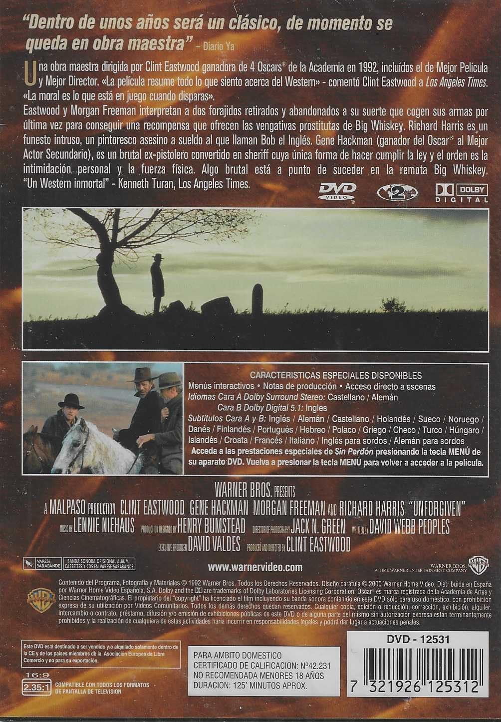 https://back.dvdstorespain.es/en/films/130416-sin-perdon-dvd-coleccion-clint-eastwood-dvd-2024--0605848276749.html130416Sin Perdón [DVD] (1992) UnforgivenWilliam Munny (Clint Eastwood) es un pistolero retirado, viudo y padre de familia, que tiene dificultades económicas para sacar adelante a su hijos. Su única salida es hacer un último trabajo. En compañía de un viejo colega (Morgan Freeman) y de un joven inexperto (Jaimz Woolvett), Munny tendrá que matar a dos hombres que cortaron la cara a una prostituta. https://dvdstorespain.es/1149129-home_default/sin-perdon-dvd-coleccion-clint-eastwood-dvd-2024-.jpg5.2893instock5.28935.2893002026-03-17T22:45:16+0100/Start/Start/DVD/Start/Films/Start/New