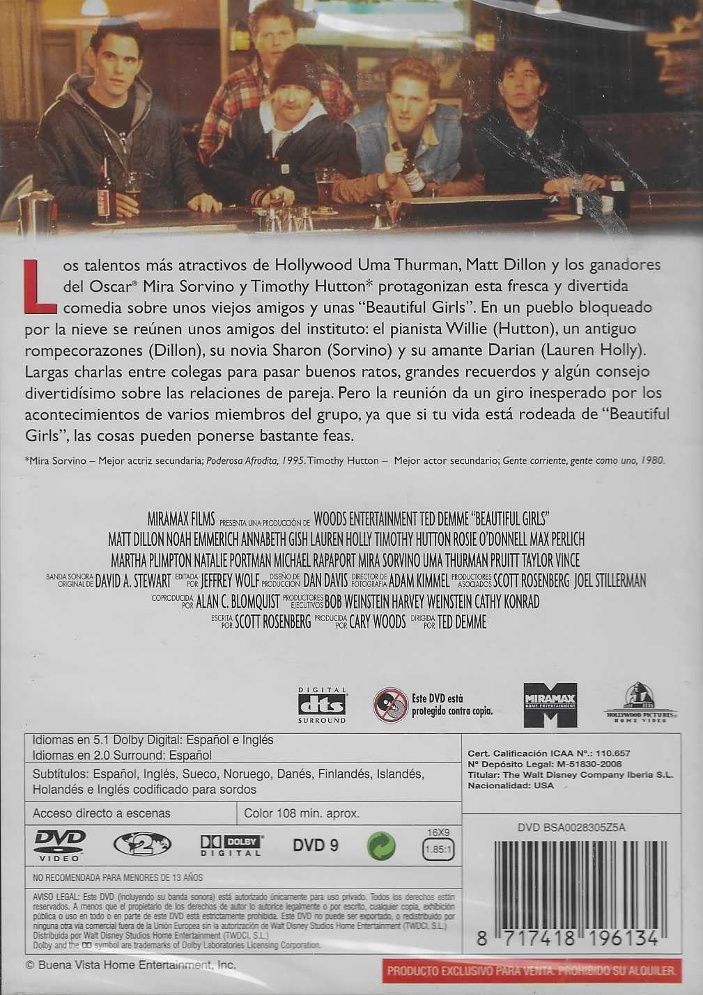https://back.dvdstorespain.es/en/films/130722-beautiful-girls-dvd-miramax-dvd-2024--0605848120561.html130722Beautiful Girls [DVD] (1996)Para asistir a una reunión de antiguos alumnos del instituto Willie Conway, un joven de 29 años, regresa a su hogar en la pequeña ciudad de Knights Ridge. Allí tendrá tiempo para reflexionar sobre su futuro, sobre la juventud que se acaba. El dilema que tiene ante sí no es fácil: ser pianista o representante de ventas. Al mismo tiempo, Willie reconsidera su relación con su novia Tracy. https://dvdstorespain.es/1153491-home_default/beautiful-girls-dvd-miramax-dvd-2024-.jpg7.2727instock7.27277.2727002026-03-20T21:00:41+0100/Start/Start/DVD/Start/Films/Start/New
