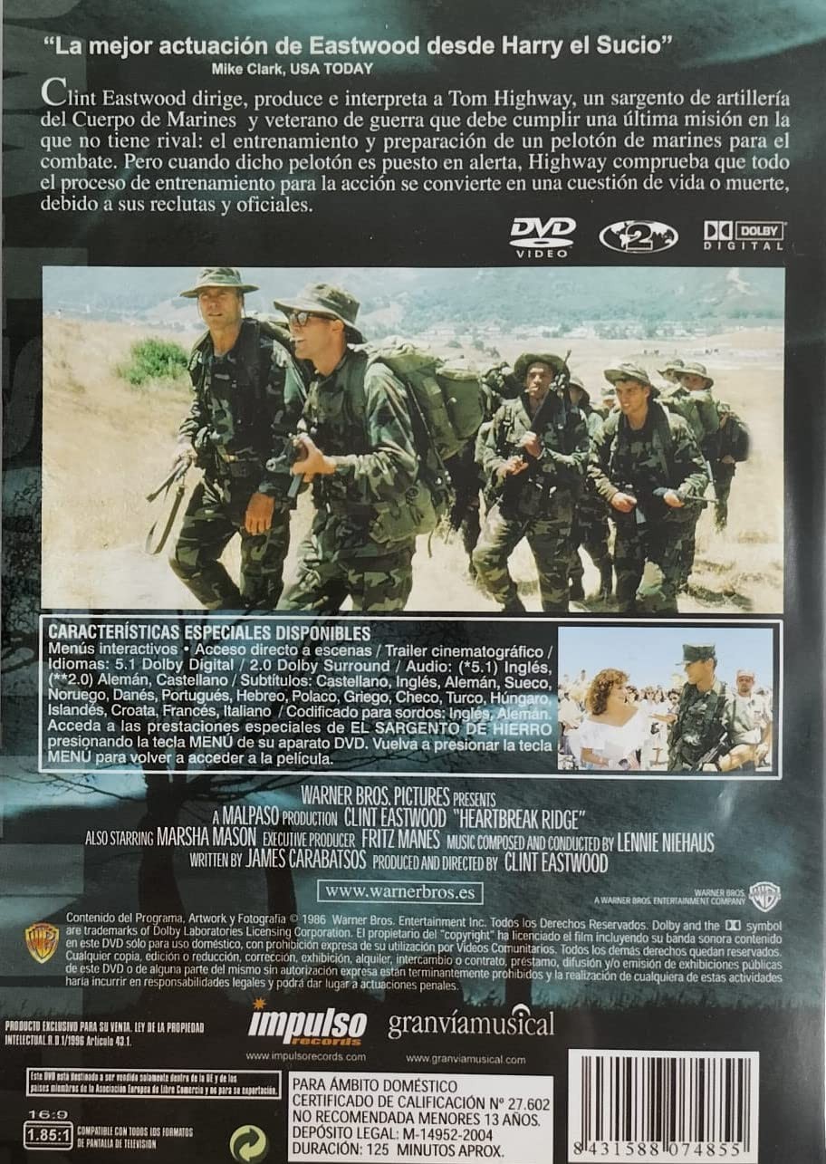 https://back.dvdstorespain.es/en/films/130808-el-sargento-de-hierro-dvd--8431588074855.html130808El Sargento de Hierro [DVD] (1986) Heartbreak RidgeEl sargento Tom Highway, veterano de las guerras de Vietnam y Corea, vuelve a los Estados Unidos para llevar a cabo una misión nada fácil: instruir a un grupo de novatos desmotivados e indisciplinados para convertirlos en auténticos marines.https://dvdstorespain.es/1154732-home_default/el-sargento-de-hierro-dvd-.jpg10.5785instock10.578510.5785002026-03-21T00:30:53+0100/Start/Start/DVD/Start/Films/Start/New