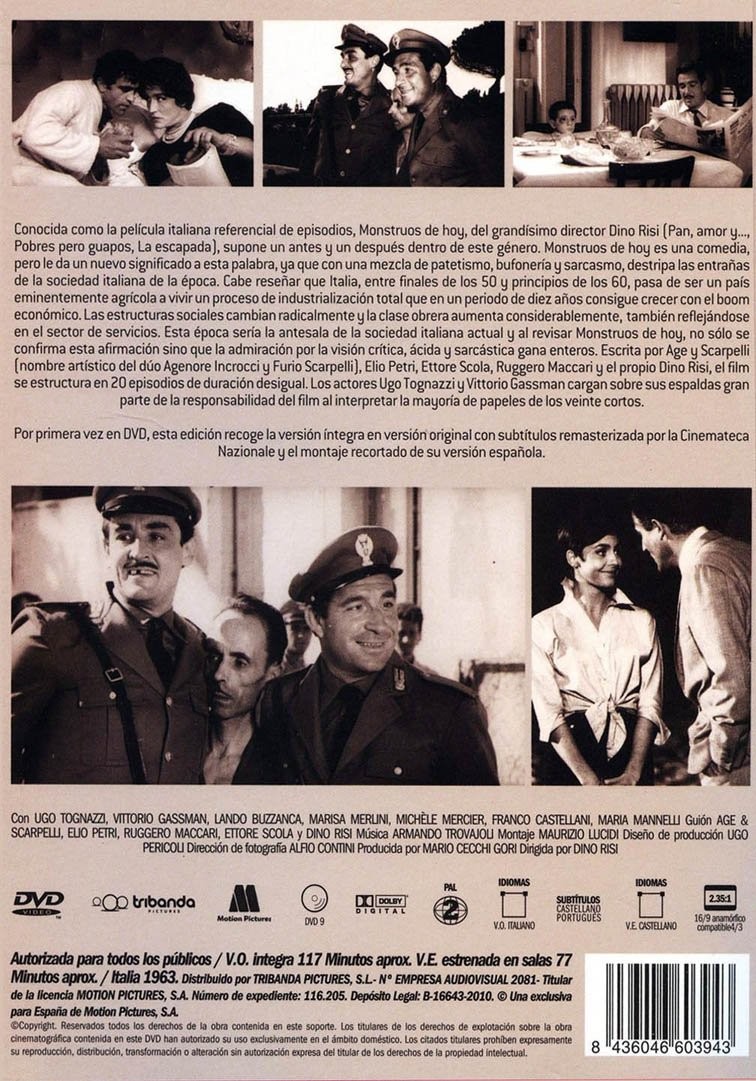 https://back.dvdstorespain.es/en/films/130818-monstruos-de-hoy-i-mostri-dvd-2010--8436046603943.html130818Monstruos de Hoy [DVD] (1963) I mostriLa película se articula en veinte breves episodios que retratan la fealdad de la Italia de la época del 'boom' económico. La película marcó una forma de rodar -por episodios- en Italia, y 14 años después el propio Risi, Ettore Scola y Mario Monicelli filmaron una secuela: "I nuovi mostri". https://dvdstorespain.es/1154941-home_default/monstruos-de-hoy-i-mostri-dvd-2010-.jpg7.2727instock7.27277.2727002026-03-21T01:15:13+0100/Start/Start/DVD/Start/Films/Start/New