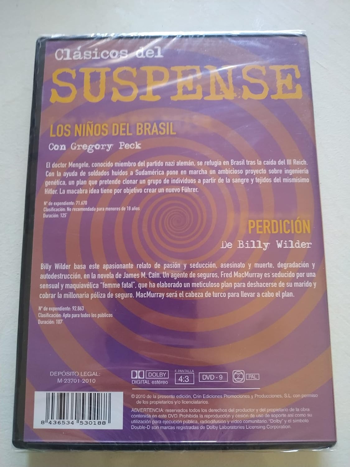 https://back.dvdstorespain.es/en/films/131253-los-niaos-del-brasil-perdician-8436534530188.html131253Los Niños del Brasil + Perdición [DVD] (1978, 1944) The Boys From Brazil + Double Indemnity<p><b>Los niños del Brasil, 1978</B></B><b> (The Boys From Brazil)</B><br>El Doctor Josef Mengele, conocido miembro del partido nazi alemán, se refugia en Brasil tras la caída del III Reich. Allí, con la colaboración de un grupo de jóvenes militantes nazis decide proseguir sus aberrantes experimentos. El americano Barry Kohler se pone en contacto con Ezra Liebermann, un cazador de nazis, cuyas investigaciones lo llevan a descubrir el escalofriante plan de Mengele. </p><p><b>Perdición, 1944</B><b> (Double Indemnity)</B><br>Un agente de seguros (Fred MacMurray) y la mujer de uno de sus clientes (Bárbara Stanwyck) traman asesinarlo para cobrar un cuantioso seguro de accidentes suscrito a sus espaldas. Todo se complica cuando entra en acción Barton Keyes (Edward G. Robinson), investigador de la empresa de seguros. </p>https://dvdstorespain.es/1161521-home_default/los-niaos-del-brasil-perdician.jpg4.6281instock4.62814.6281002026-03-26T21:15:03+0100/Start/Start/Films/Start/New