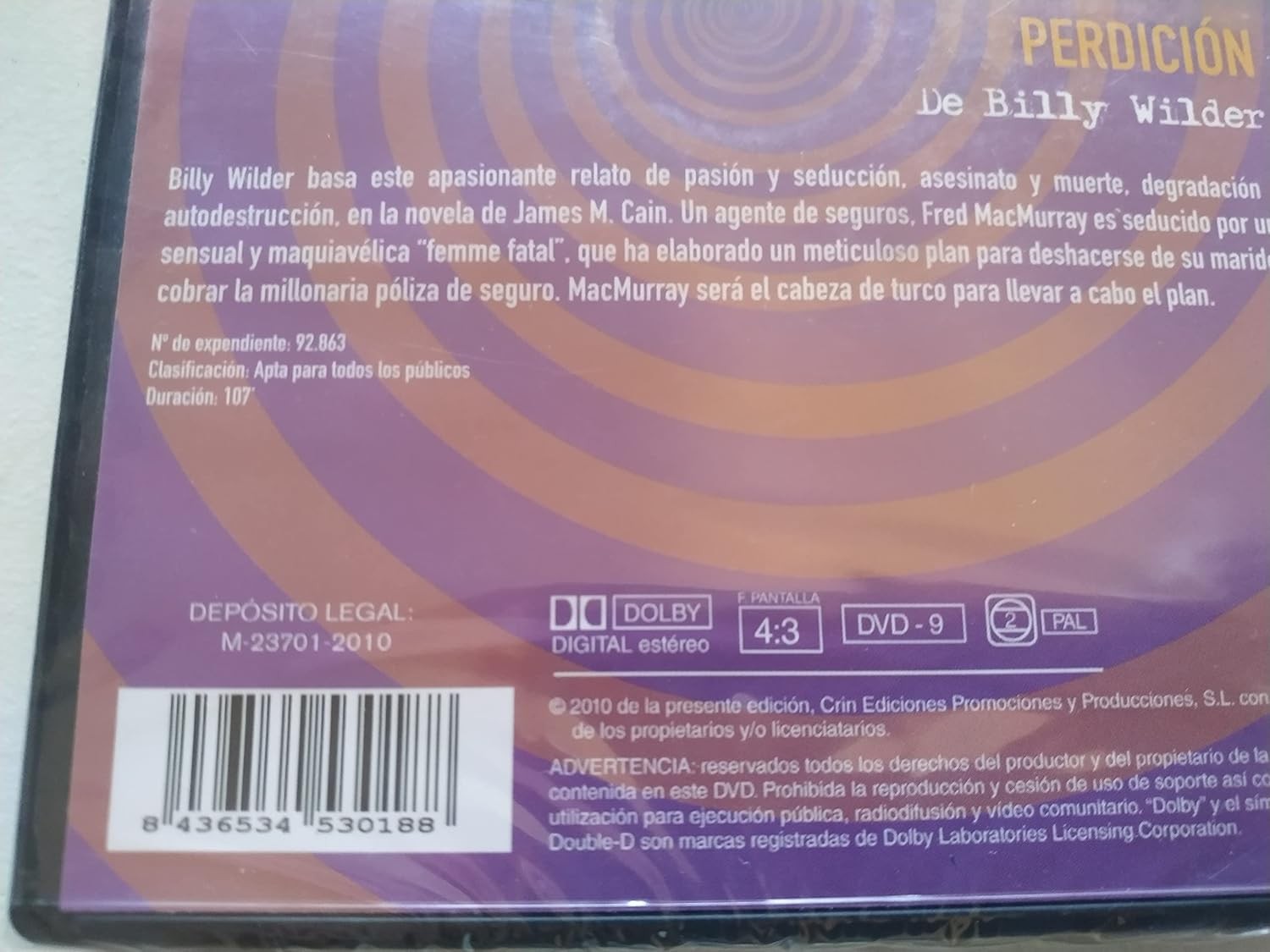 Perdición, 1944 (Double Indemnity) Un agente de seguros (Fred MacMurray) y la mujer de uno de sus clientes (Bárbara Stanwyck) traman asesinarlo para cobrar un cuantioso seguro de accidentes suscrito a sus espaldas. Todo se complica cuando entra en acción Barton Keyes (Edward G. Robinson), investigador de la empresa de seguros.