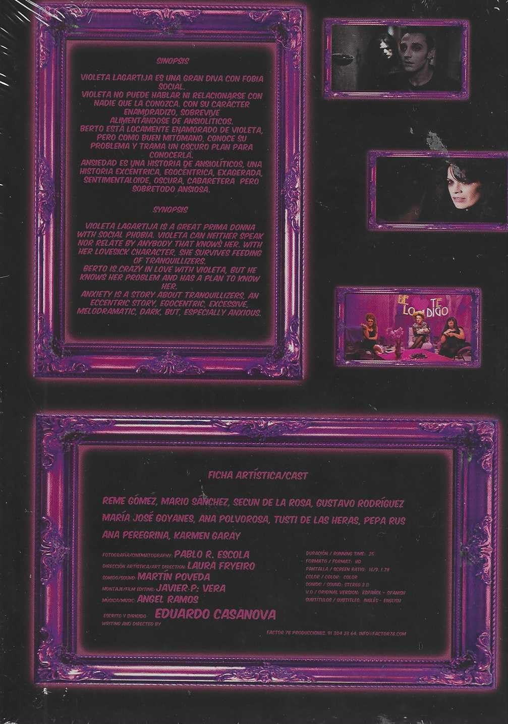 https://back.dvdstorespain.es/en/films/131623-ansiedad-dvd-dvd-2024--0605848650563.html131623Ansiedad [DVD] (2010)Violeta Lagartija es una gran diva con fobia social. No puede hablar ni relacionarse con nadie que la conozca. Con su carácter enamoradizo, sobrevive atiborrándose de ansiolíticos. Berto está locamente enamorado de Violeta, pero, como buen mitómano, conoce su problema y trama un oscuro plan para conocerla. "Ansiedad" es una historia excéntrica, egocéntrica, exagerada, sentimentaloide, oscura, cabaretera... pero, ante todo, ansiosa. https://dvdstorespain.es/1167400-home_default/ansiedad-dvd-dvd-2024-.jpg11.9008instock11.900811.9008002026-04-02T21:16:03+0200/Start/Start/DVD/Start/Films/Start/New