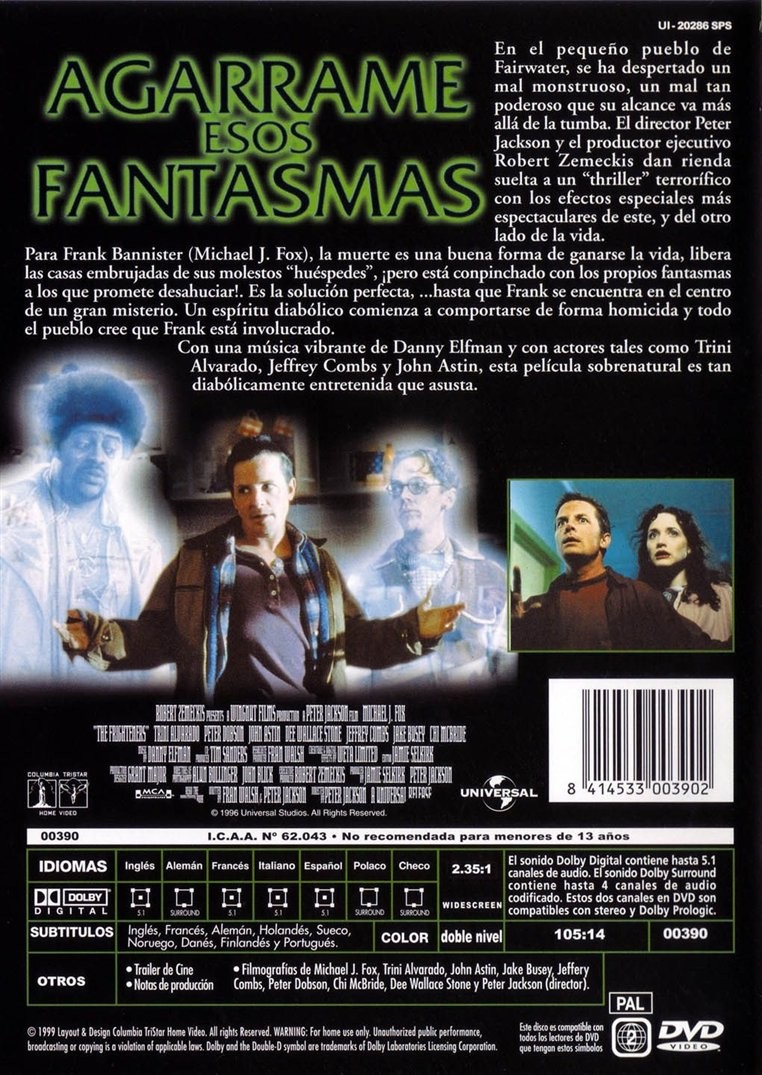https://back.dvdstorespain.es/en/films/131986-agarrame-esos-fantasmas-dvd--8414533003902.html131986Agárrame Esos Fantasmas [DVD] (1996) The FrightenersFrank Bannister es un charlatán que posee extraordinarias facultades psíquicas, pero no las usa para hacer el bien, sino para ganar dinero hostigando a sus clientes con la ayuda de algunos espectros que trabajan a su servicio. La situación cambiará cuando en el pueblo empiecen a producirse una serie de muertes inexplicables. https://dvdstorespain.es/1175118-home_default/agarrame-esos-fantasmas-dvd-.jpg9.9174instock9.91749.9174002026-04-16T17:00:02+0200/Start/Start/DVD/Start/Films/Start/New