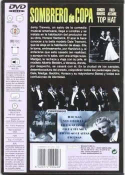 https://back.dvdstorespain.es/en/films/26751-sombrero-de-copa-dvd--8420172020408.html26751Sombrero De Copa [DVD] (1935) Top HatJerry Travers, un astro de la comedia musical americana, llega a Londres y se instala en la habitación del productor de su obra, Horace Hardwick. El azar le hace conocer a la bella modelo Dale Tremont, que se aloja en la habitación de abajo. Ella le toma, erróneamente, por Hardwick y, al enterarse que está casado (en realidad, y aunque no lo sabe, con una amiga suya, Madge), le rechaza y viaja con su jefe, el modisto Alberto Beddini, a Venecia. https://dvdstorespain.es/743463-home_default/sombrero-de-copa-dvd-.jpg3.9669instock3.96693.9669002016-04-18T00:36:04+0200/Start/Start/Films/Start/New