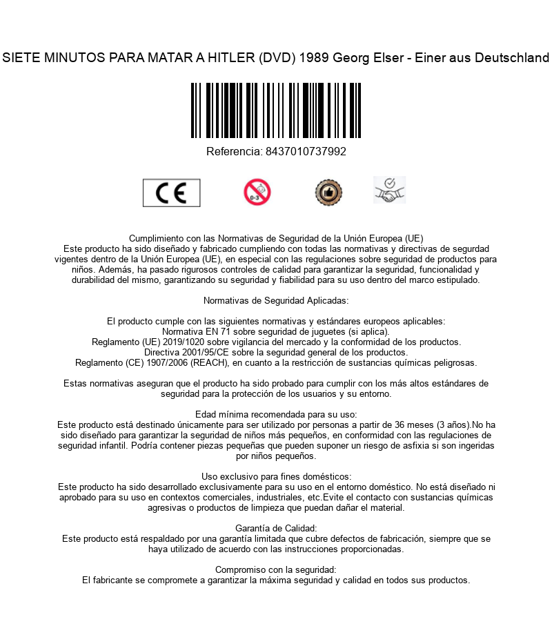 https://back.dvdstorespain.es/en/films/28857-georg-elser-einer-aus-deutschland-dvd--8437010737992.html28857Georg Elser - Einer Aus Deutschland [DVD]<div>"Seven Minutes to Kill Hitler" is based on real events and tells us the preparations and weeks prior to the attack suffered by Adolf Hitler and other important Nazi members on November 8, 1939 at the Brgerbrukeller brewery in Munich by the German carpenter Georg Elser, who decides to act after seeing his Jewish neighbors deported and exterminated as the power of the party increases.</div>https://dvdstorespain.es/269124-home_default/georg-elser-einer-aus-deutschland-dvd-.jpg4.876instockKarma Films4.8764.876002016-05-23T08:48:29+0200/Start/Start/DVD/Start/Films/Start/New