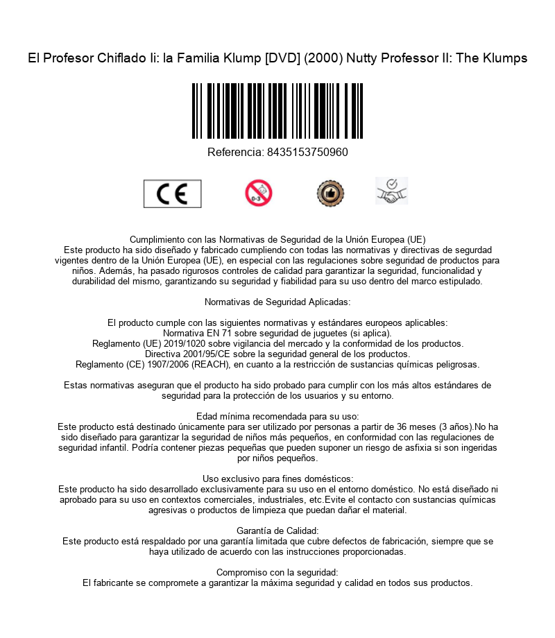 https://back.dvdstorespain.es/en/films/33651-the-nutty-professor-dvd--8435153750960.html33651El Profesor Chiflado Ii: la Familia Klump [DVD] (2000) Nutty Professor II: The KlumpsEl profesor Sherman Klump está a punto de casarse y toda la familia Klump no podría estar más feliz. Pero su alter-ego Buddy Love volverá para intentar hacer de las suyas. Utilizando una muestra de ADN obtenida del laboratorio de Denise, la prometida de Sherman, intentará independizarse de él creando un clon suyo.https://dvdstorespain.es/573833-home_default/the-nutty-professor-dvd-.jpg4.4256instockDEAPLANETA4.42564.4256002016-11-21T08:08:02+0100/Start/Start/DVD/Start/Films/Start/New/Start/EVENING SP 70