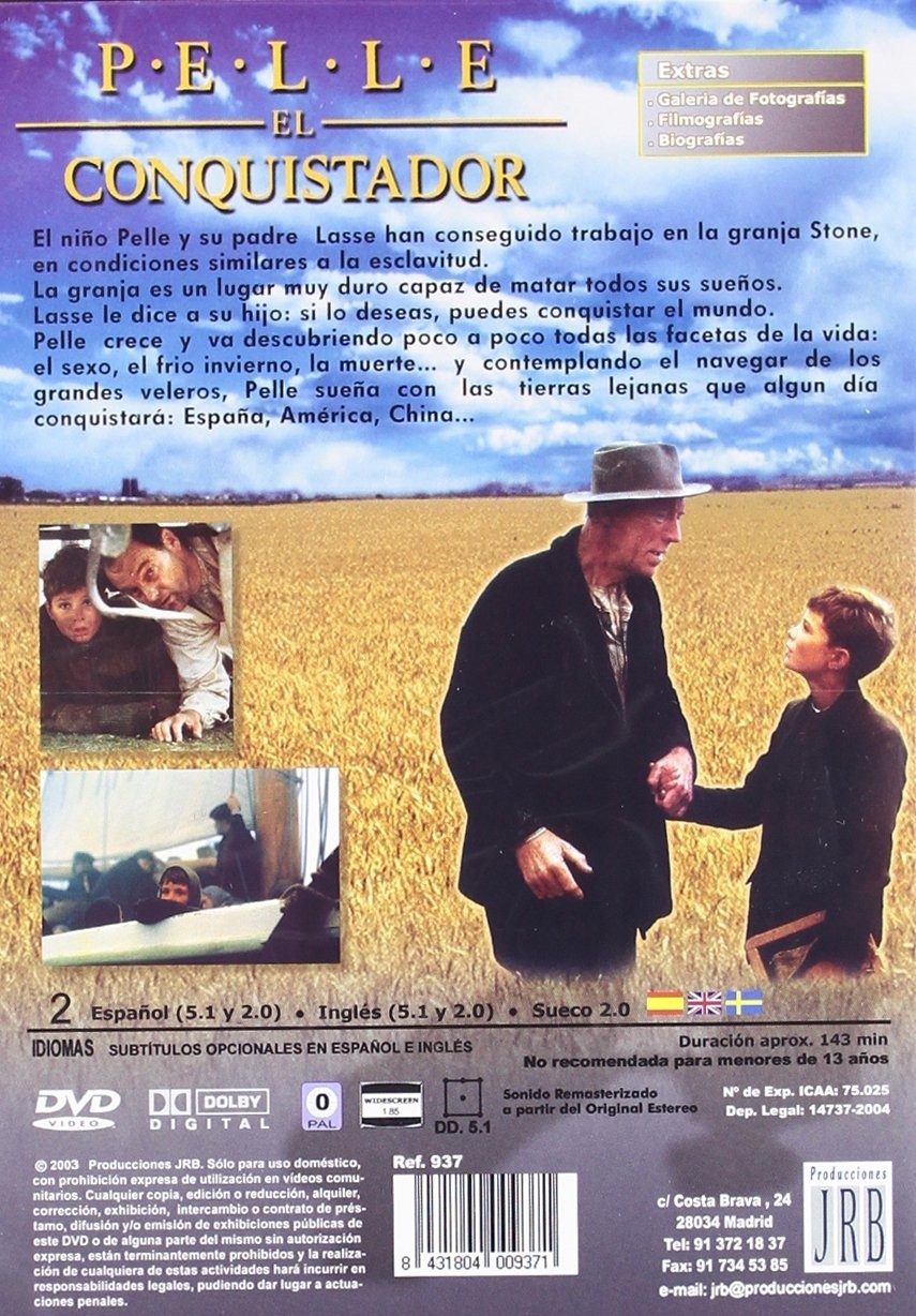 Spain Edition, PAL/Region 0 DVD : LANGUAGES: Spanish (Dolby Digital 2.0), Spanish (Dolby Digital 5.1), English (Dolby Digital 2.0), English (Dolby Digital 5.1), Swedish (Dolby Digital 2.0), WIDESCREEN (1.85: 1), EXTRAS: Scene Access, Biographies, Filmographies, Photo Gallery, Interactive Menu, SYNOPSIS: The boy Pelle and his father Lasse have found work on the Stone farm, in conditions similar to slavery. The farm is a very hard place capable of killing all your dreams. Lasse tells his son: if you want, you can conquer the world. Pelle grows up and little by little discovers all the facets of life: sex, the cold winter, death... and contemplating the sailing of the large sailboats, Pelle dreams of the distant lands that one day he will conquer: Spain, America , China... SCREENED/AWARDED AT: Oscar Academy Awards, Cannes Film Festival, Golden Globes, ...Pelle El Conquistador / Pelle the Conqueror (Pelle erobreren)