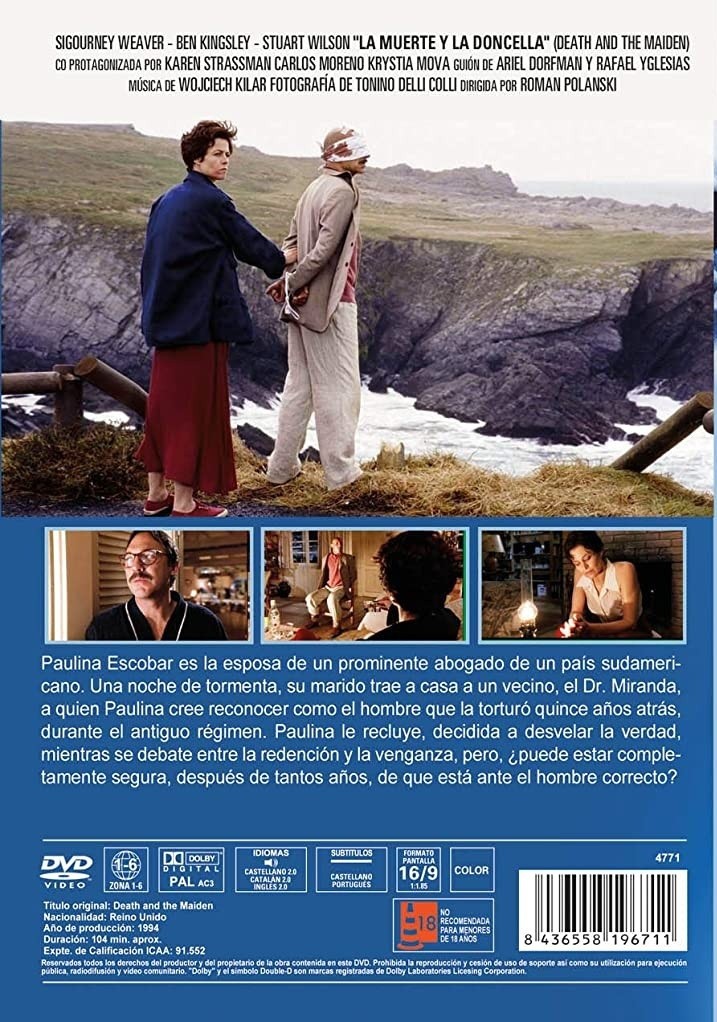 https://back.dvdstorespain.es/en/films/47401-death-and-the-maiden-dvd--8436558196711.html47401La Muerte y la Doncella [DVD] (1994) Death and the MaidenEn un país imaginario que acaba de sufrir una terrible dictadura, viven Paulina Escobar y su marido Gerardo, un prestigioso abogado. Una noche, Gerardo tiene una avería con su coche, pero un hombre se ofrece a ayudarle...https://dvdstorespain.es/486215-home_default/death-and-the-maiden-dvd-.jpg4.1653instockResearch Entertainment5.95044.165329.9996638881421.78512019-01-09T20:48:32+0100/Start/Start/DVD/Start/Films/Start/New/Start/18 YEARS YES D&O/Start/APRIL sales/-30%/Start/APRIL sales