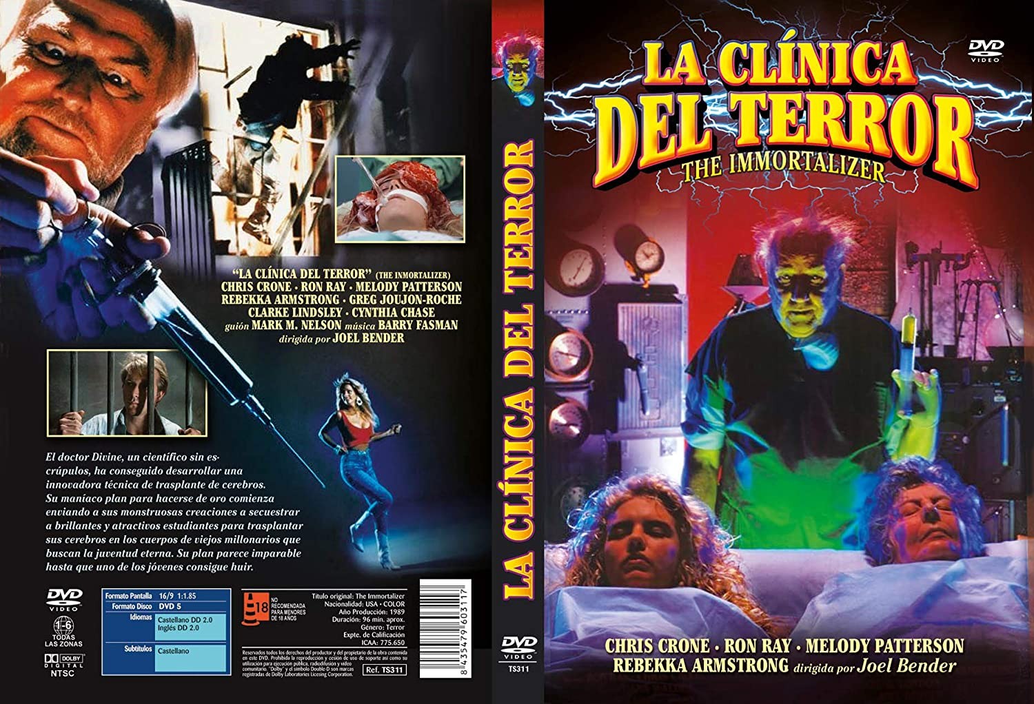 https://back.dvdstorespain.es/en/films/47571-the-immortalizer-dvd--8435479603117.html47571La Clínica del Terror [DVD] (1989) The ImmortalizerEl doctor Divine, un científico sin escrúpulos, ha conseguido desarrollar una innovadora técnica de trasplante de cerebros. Su maníaco plan para hacerse de oro comienza enviando a sus monstruosas creaciones a secuestrar a brillantes y atractivos estudiantes para trasplantar sus cerebros en los cuerpos de viejos millonarios que buscan la juventud eterna. Su plan parece imparable hasta que uno de los jóvenes consigue huir.https://dvdstorespain.es/485135-home_default/the-immortalizer-dvd-.jpg6.5289instockResearch Entertainment6.52896.5289002019-01-30T15:47:37+0100/Start/Start/DVD/Start/Films/Start/New/Start/18 YEARS YES D&O