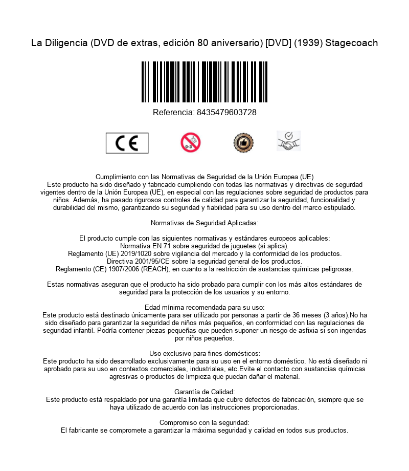 https://back.dvdstorespain.es/en/films/49776-stagecoach-dvd--8435479603728.html49776La Diligencia (DVD de extras, edición 80 aniversario) [DVD] (1939) StagecoachPersonajes muy variopintos emprenden un largo, duro y peligroso viaje en diligencia. Entre ellos, un fuera de la ley en busca de venganza, una prostituta a la que han echado del pueblo, un jugador, un médico, la mujer embarazada de un militar, un sheriff. Las relaciones entre ellos serán difíciles y tensas. Además, durante el viaje, tendrán que afrontar el ataque de una partida de indios apaches.https://dvdstorespain.es/474548-home_default/stagecoach-dvd-.jpg5.9504instockResearch Entertainment5.95045.9504002019-07-03T20:21:45+0200/Start/Start/DVD/Start/Films/Start/New/Start/EVENING SP 70/Start/VELADA DE 80/Start/VELADA FR 80/Start/VELADA IT 80