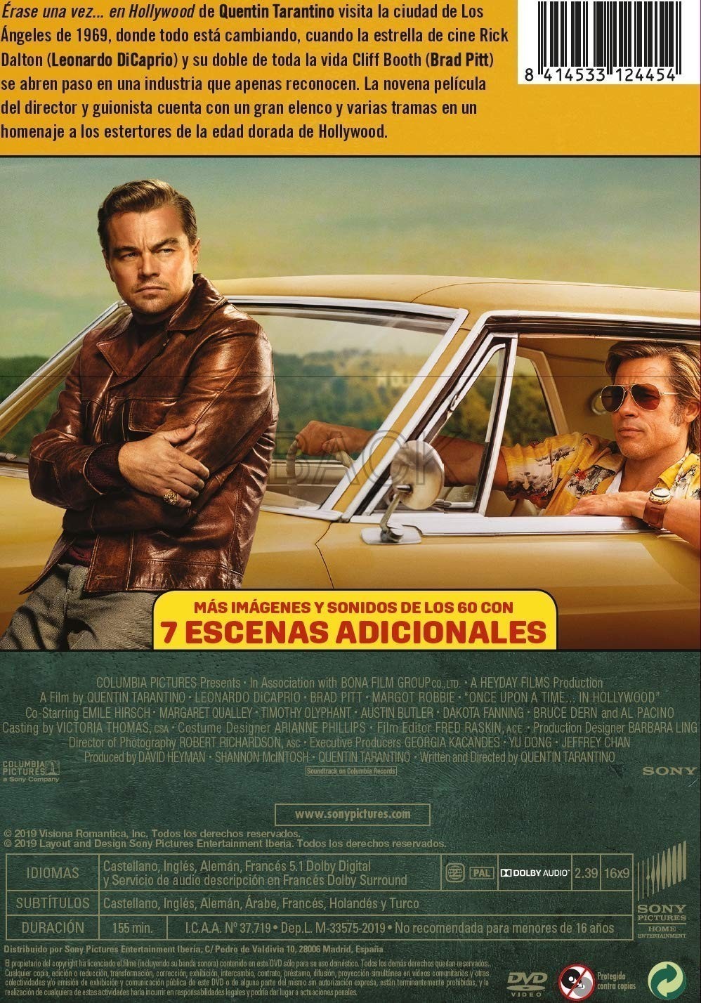 https://back.dvdstorespain.es/en/films/53639-erase-una-vezen-hollywood-dvd--8414533124454.html53639Érase una Vez En... Hollywood [DVD] (2019) Once Upon a Time in... HollywoodHollywood, años 60. La estrella de un western televisivo, Rick Dalton (DiCaprio), intenta amoldarse a los cambios del medio al mismo tiempo que su doble (Pitt). La vida de Dalton está ligada completamente a Hollywood, y es vecino de la joven y prometedora actriz y modelo Sharon Tate (Robbie) que acaba de casarse con el prestigioso director Roman Polanski. https://dvdstorespain.es/670495-home_default/erase-una-vezen-hollywood-dvd-.jpg11.8264instock11.826411.8264002019-12-13T00:35:46+0100/Start/Start/DVD/Start/Films/Start/New/Start/EVENING SP 70/Start/VELADA DE 60/Start/VELADA FR 60/Start/VELADA IT 60