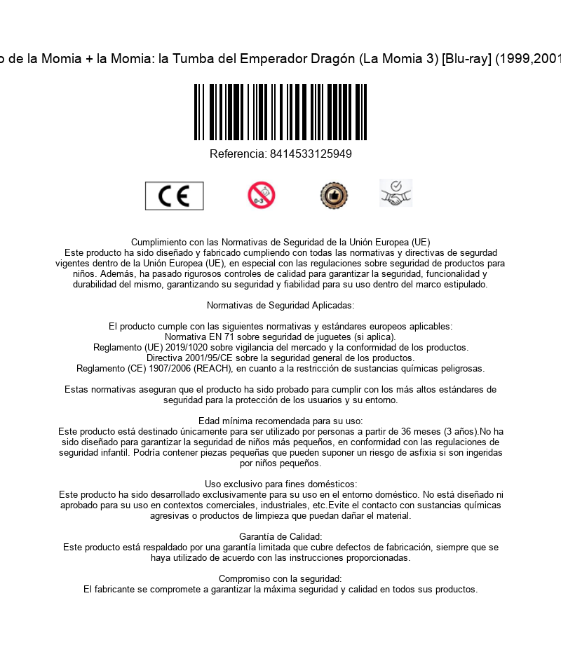 https://back.dvdstorespain.es/en/films/53659-la-momia-1-3-bd-blu-ray--8414533125949.html53659La Momia + el Regreso de la Momia + la Momia: la Tumba del Emperador Dragón (La Momia 3) [Blu-ray] (1999,2001,2008) The Mummy + Durante una batalla en Egipto, el legionario Rick O'Connell y un compañero descubren las ruinas de Hamunaptra, la ciudad de los muertos. Algún tiempo después vuelven al mismo lugar con una egiptóloga y su hermano. Allí coinciden con un grupo de estadounidenses, deseosos de correr aventuras, que acabarán provocando la resurrección de la momia de un diabólico sacerdote egipcio que intenta desesperadamente recuperar a su amada. ,Han pasado diez años, Rick O'Connell (Brendan Fraser) se ha casado con Evelyn (Rachel Weisz), y ambos son padres del pequeño Alex (Freddie Boath) de ocho años. Tras una serie de acontecimientos, la momia del antiguo sacerdote egipcio Imhotep es resucitada por una extraña secta en el British Museum, y la maldición milenaria del Rey Escorpión -que seis mil años atrás traicionó al dios Anubis- lo devuelve a la vida. El choque entre ambas fuerzas malignas desencadenará el caos en el mundo... si Rick y Evelyn no consiguen evitarlo. ,Condenados por una perversa bruja a permanecer en estado de muerte aparente para siempre, el despiadado emperador chino Dragón y sus diez mil guerreros han reposado durante siglos en su tumba de barro cual ejército de terracota. Cuando le exigen al joven aventurero y arqueólogo Alex O'Connel que despierte de su sueño eterno al temible gobernante, no tendrá más remedio que consultar a sus padres: las únicas personas expertas en no muertos. Cuando el monarca regresa a la vida, su afán de dominio no tiene límites y, usando sus poderes sobrenaturales, se lanzará con sus tropas a la conquista del Lejano Oriente, a menos que los O’Connell encuentren la forma de impedírselo.https://dvdstorespain.es/644108-home_default/la-momia-1-3-bd-blu-ray-.jpg27.1901instock27.190127.1901002019-12-13T00:36:06+0100/Start/Start/Blu-Ray/Start/Films/Start/New