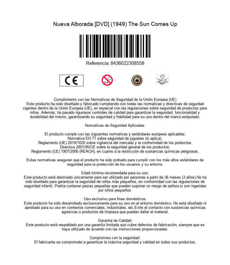 https://back.dvdstorespain.es/en/films/6142-the-sun-comes-up-dvd--8436022308558.html6142Nueva Alborada [DVD] (1949) The Sun Comes UpMelodrama en el que una madre viuda, cantante de ópera, pierde a su hijo, atropellado por un camión mientras intentaba salvar a Lassie. Tiempo después, gracias a Lassie, encontrará a un huérfano desvalido... https://dvdstorespain.es/244423-home_default/the-sun-comes-up-dvd-.jpg5.1694instockLlamentol5.16945.1694002015-04-15T14:28:07+0200/Start/Start/DVD/Start/Films/Start/New/Start/EVENING SP 70/Start/VELADA DE 80/Start/VELADA FR 80/Start/VELADA IT 80/Start/OFFERS AT €1.95 (buying 5 or more)Richard Thorpe