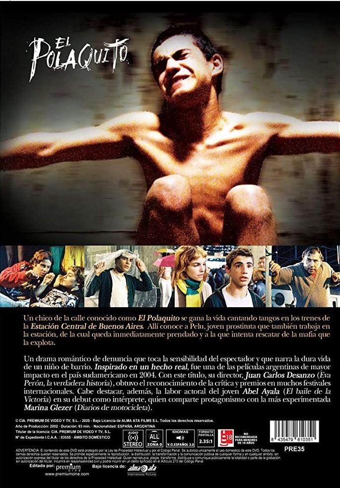 https://back.dvdstorespain.es/en/films/87445-el-polaquito-dvd--8435479610351.html87445El Polaquito [DVD] (2003)Un chico de la calle, de 13 años de edad, se gana la vida cantando tangos en los trenes de la estación central de Buenos Aires. Imita a Polaco Goyeneche, el famoso cantante de tangos, por lo que la gente le conoce como "El Polaquito". El Polaquito conoce a "Pelu", una joven prostituta que también trabaja en la estación de Constitución, de la cual queda inmediatamente prendado y a la que intenta rescatar de la mafia que la explota. Este comportamiento de El Polaquito lo enfrenta con "Rengo", líder de esta mafia que, en connivencia con la policía de la estación, comienza a hostigarlo tratando de quitarle esa idea de la cabeza e intentando interrumpir su relación con Pelu. Pese a ello, El Polaquito acomete una denodada lucha contra la mafia, sin medir riesgos ni consecuencias, procurando emprender, definitivamente, el camino de amor que ha trazado junto a Pelu.https://dvdstorespain.es/434069-home_default/el-polaquito-dvd-.jpg4.876instockResearch Entertainment4.8764.876002020-12-30T00:25:22+0100/Start/Start/DVD/Start/Films/Start/New/Start/18 YEARS YES D&O