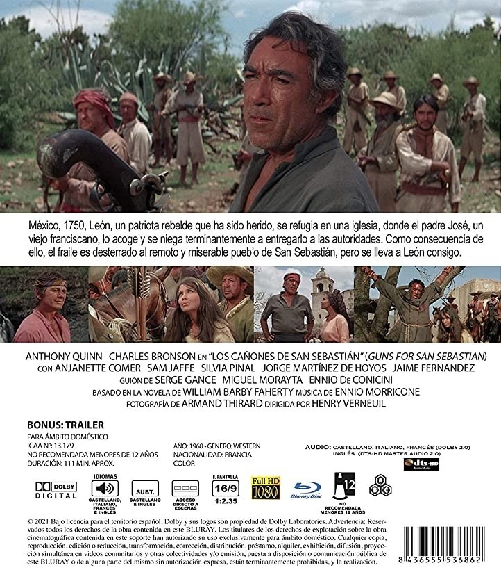 https://back.dvdstorespain.es/en/films/89912-la-bataille-de-san-sebastian-bluray--8436555536862.html89912Los Cañones de San Sebastián [Blu-ray] (1968) La bataille de San SebastianMéxico, 1750, León, un patriota rebelde que ha sido herido, se refugia en una iglesia, donde el padre José, un viejo franciscano, lo acoge y se niega terminantemente a entregarlo a las autoridades. Como consecuencia de ello, el fraile es desterrado al remoto y miserable pueblo de San Sebastián, pero se lleva a León consigo.https://dvdstorespain.es/412475-home_default/la-bataille-de-san-sebastian-bluray-.jpg7.9587instockResearch Entertainment7.95877.9587002021-08-25T00:10:48+0200/Start/Start/Blu-Ray/Start/Films/Start/New/Start/EVENING SP 20/Start/VELADA DE 60/Start/VELADA FR 60/Start/VELADA IT 60