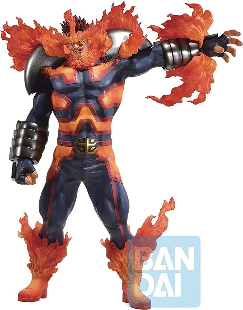 Endeavor es el héroe con mayor cifra de casos resueltos en la historia. Este poderoso personaje del manga y anime My Hero Academia salía en la película de 2021 "Worlds Heroes Mission". La impresionante estatua de 30 cms que nos trae Banpresto está inspirada en el aspecto del personaje en esta cinta. Su tallado y colores son increíbles, detallados y fieles. Los efectos de llamas por su cuerpo están muy cuidados, sobre todo el trabajo de pintura que va pasando de un color rojo a otro más amarillo por los miembros de la estatua. Incluye una base para exposición que viene junto a la figura en su estelar caja de llamativos colores. Está hecha en PVC y es de licencia oficial.