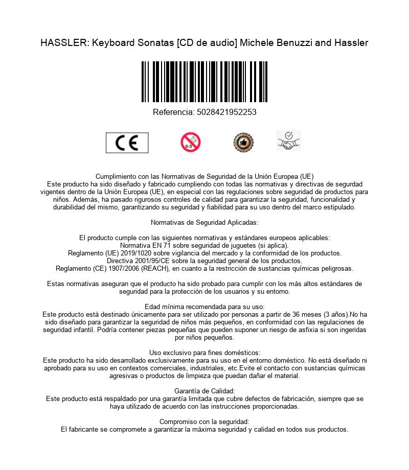 6 Sonaten Fürs Clavier, 6 Neue Sonaten Fürs Clavier Oder Pianoforte, 6 Leichte Sonaten Fürs Clavier - Vissuto between 1742 and il 1822, Johann Wilhem Hässler has completely brought back the stylistic passage from the baroque to the classical period. In its linguaggio we coexist with diverse idiomi that arrive to determine complex expressions. The raccolte operation in this group of 4 CDs clearly shows Hässler's stylistic sviluppo, giving the polyphony and the fine barocchi counterpoint with an elegant and refined linguaggio in Haydnian style. Michele Benuzzi uses 4 diverse instruments to obtain the greatest variety and to follow the stylistic progression of the opera: harpsichord, harpsichord, Silbermann pianoforte and Broadwood.