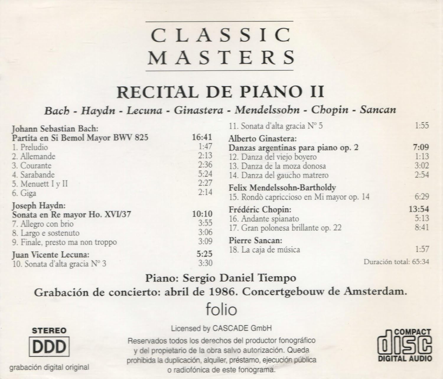 https://back.dvdstorespain.es/en/music/125787-classic-masters-recital-de-piano-ii-bach-haydn-lecuna-ginastera-mendelssohn-chopin-sancan-concertgebouw-de-amsterdam-19-0634065157944.html125787Classic Masters: Recital de Piano II, Bach, Haydn, Lecuna, Ginastera, Mendelssohn, Chopin, Sancan, Concertgebouw de Amsterdam 19https://dvdstorespain.es/1040770-home_default/classic-masters-recital-de-piano-ii-bach-haydn-lecuna-ginastera-mendelssohn-chopin-sancan-concertgebouw-de-amsterdam-19.jpg7.9339instockOk Records, S.l.7.93397.9339002025-08-08T16:51:03+0200/Music/CD Audio