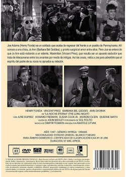 https://back.dvdstorespain.es/en/outlet-dvd-blu-ray-and-cd/52753-the-long-night-dvd--8436555535629.html52753La Noche Eterna [DVD] (1947) The Long NightJoe Adams es un soldado que acaba de regresar del frente a un pueblo de Pennsylvania. Allí conoce a una chica, Jo Ann, y pronto surgirá el amor entre ellos. Pero Joe se entera de que Jo Ann está visitando a un vidente, Maximilian, que resulta ser un apuesto seductor que trata de interponerse entre los amantes por medio de intrigas. Así las cosas, visita a Joe para advertirle que el espíritu del padre de su novia no aprueba su relación. https://dvdstorespain.es/464894-home_default/the-long-night-dvd-.jpg3.2231instockResearch Entertainment6.52893.223150.6333379282883.30582019-10-23T00:00:08+0200/Start/Start/DVD/Start/Films/Start/Outlet DVD , Blu-Ray and CD/Start/New/Start/EVENING SP 40/Start/VELADA DE 60/Start/VELADA FR 60/Start/VELADA IT 60