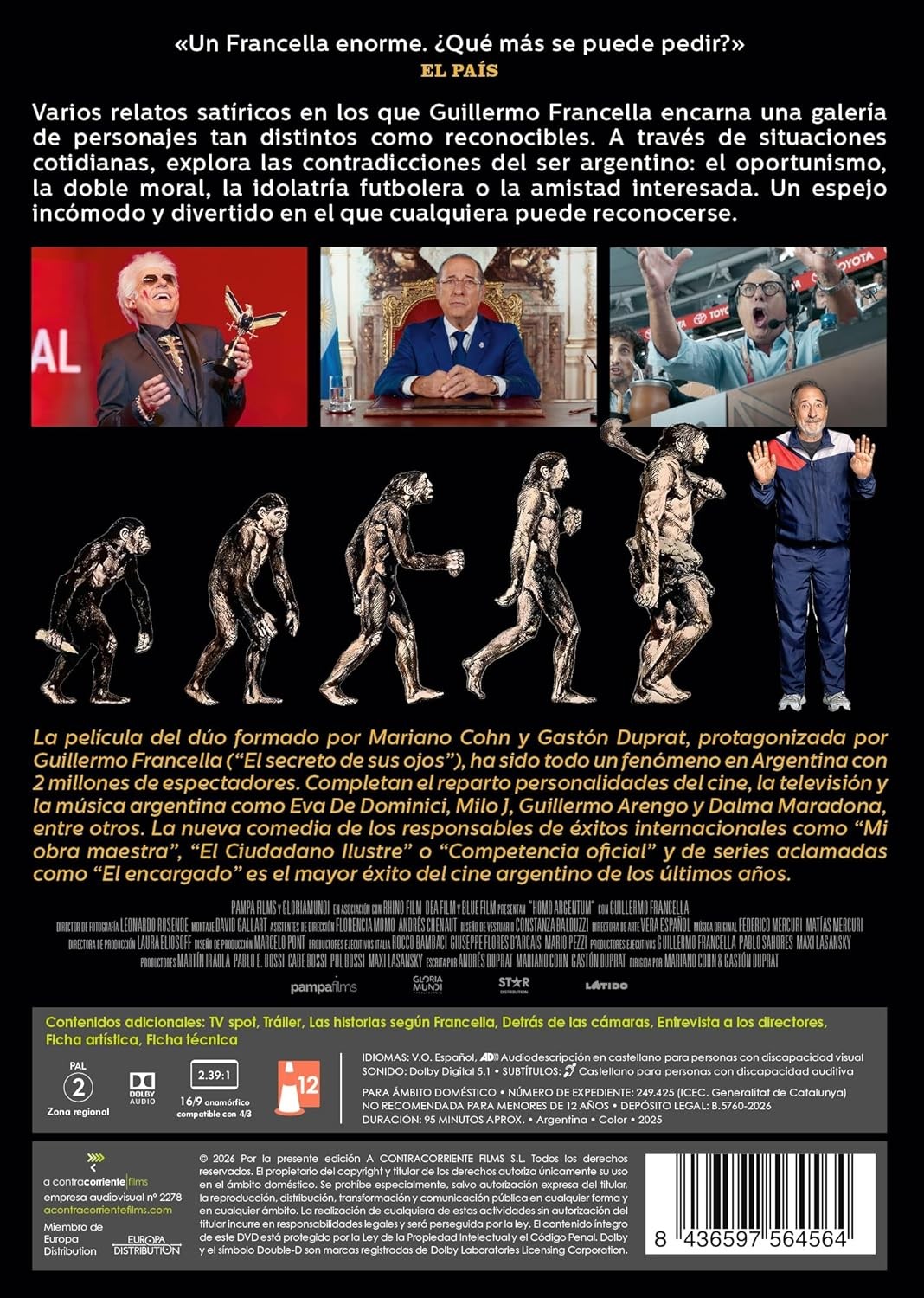https://back.dvdstorespain.es/en/presale/131734-homo-argentum-dvd-2026--8436597564564.html131734Homo Argentum [DVD] (2025)Película compuesta por 16 historias cortas que exploran con humor y autocrítica las particularidades de la cultura argentina. Cada relato, con tono satírico, refleja costumbres, conductas y actitudes propias del país, invitando a la reflexión desde la risa y destacando la capacidad del cine para retratar aspectos de la identidad nacional.https://dvdstorespain.es/1169742-home_default/homo-argentum-dvd-2026-.jpg13.1405instock13.140513.1405002026-04-14T07:45:16+0200/Start/Start/DVD/Start/Films/Start/Presale