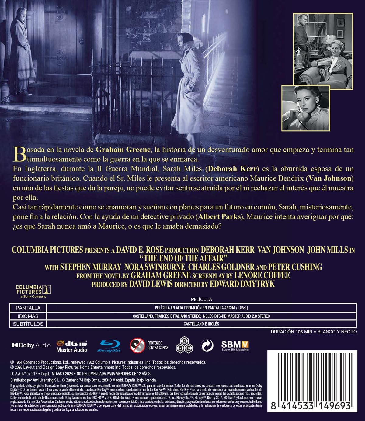 https://back.dvdstorespain.es/en/presale/132167-vivir-un-gran-amor-bd-blu-ray-2026--8414533149693.html132167Vivir un Gran Amor [Blu-ray] (1955) The End of the AffairInglaterra, II Guerra Mundial. Sarah Miles (Deborah Kerr) es la aburrida esposa de un funcionario británico. Cuando, durante una fiesta, su marido le presenta al escritor americano Maurice Bendrix (Van Jonson), Sarah no puede evitar sentirse atraída por él. Entre ambos nace un amor apasionado que los lleva a soñar con un futuro común, pero, inexplicablemente, Sarah pone fin a la relación. Con la ayuda de un detective privado (Albert Parks), Maurice intenta averiguar por qué. https://dvdstorespain.es/1177787-home_default/vivir-un-gran-amor-bd-blu-ray-2026-.jpg11.7355instock11.735511.7355002026-04-23T00:50:02+0200/Start/Start/Blu-Ray/Start/Films/Start/Presale
