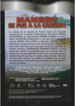 https://back.dvdstorespain.es/en/second-hand/129113-mambru-se-fue-a-la-guerra-dvd-edicion-sobre-dvd-2024--0634065166571.html129113copy of Mambrú se Fue a la Guerra (Edición sobre) [DVD] (1986)La noticia de la muerte de Franco tiene una especial resonancia en la familia que forman Florentina, su hija Encarna, su yerno Hilario y los hijos del matrimonio, Juanita y Manolín. Al mismo tiempo, Florentina comunica al resto de la familia una noticia mucho más importante que la muerte del dictador: su marido Emiliano, al que habían dado por muerto en la guerra civil, está vivo. Durante el franquismo ha permanecido oculto en la propia vivienda familiar.https://dvdstorespain.es/1125395-home_default/mambru-se-fue-a-la-guerra-dvd-edicion-sobre-dvd-2024-.jpg4.6281instock4.62814.6281002026-02-03T08:48:55+0100/Start/Start/DVD/Start/Films/Start/Second hand