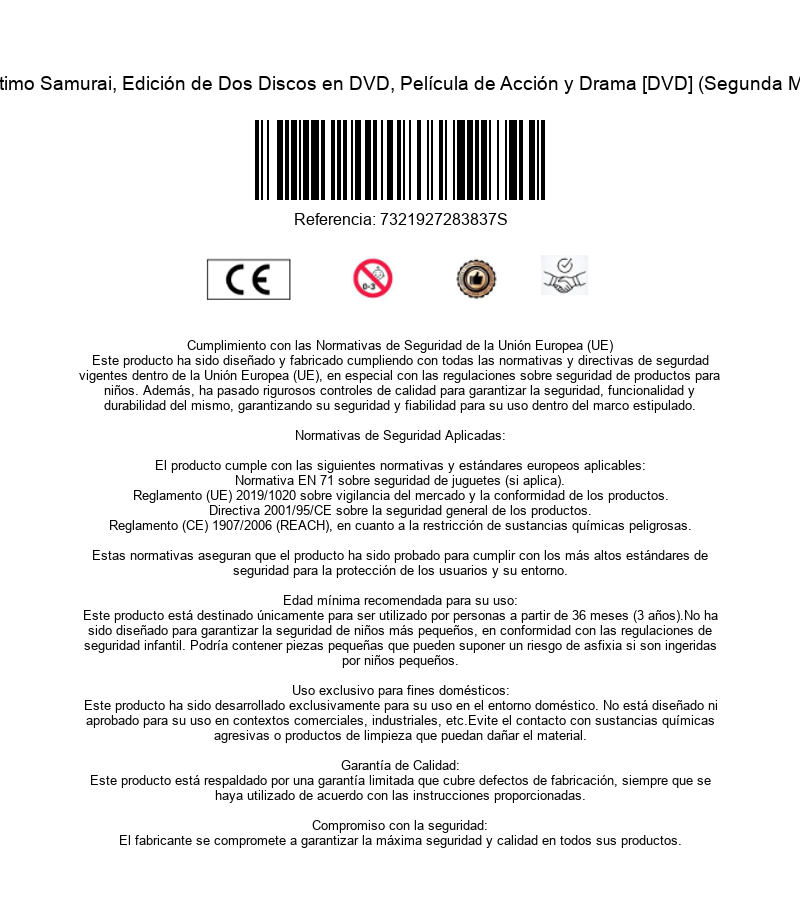 https://back.dvdstorespain.es/en/second-hand/130327-el-ultimo-samurai-edicion-de-dos-discos-en-dvd-pelicula-de-accion-y-drama-dvd--7321927283837.html130327El Último Samurái (2 discos) [DVD] (2003) The Last Samurai (Segunda mano)Año 1876. El capitán Nathan Algren es un hombre que sobrevive atormentado por los recuerdos de la Guerra Civil (1861-1865) y de las campañas contra los indios, en las que participó arriesgando su vida. Desde entonces, el mundo ha cambiado radicalmente: el pragmatismo ha reemplazado al valor, el interés personal ha ocupado el lugar del sacrificio, y el sentido del honor ha desaparecido. En un país muy lejano, otro soldado ve también cómo su modo de vida está a punto de desintegrarse. Es Katsumoto, el último líder de un antiguo linaje de guerreros, los venerados samuráis, que dedicaron sus vidas a servir al emperador y a preservar el espíritu de la milenaria cultura japonesa. https://dvdstorespain.es/1147726-home_default/el-ultimo-samurai-edicion-de-dos-discos-en-dvd-pelicula-de-accion-y-drama-dvd-.jpg9.0909instock9.09099.0909002026-03-15T13:19:52+0100/Start/Start/DVD/Start/Films/Start/Second hand